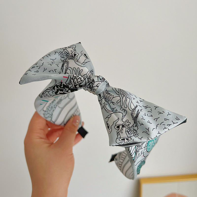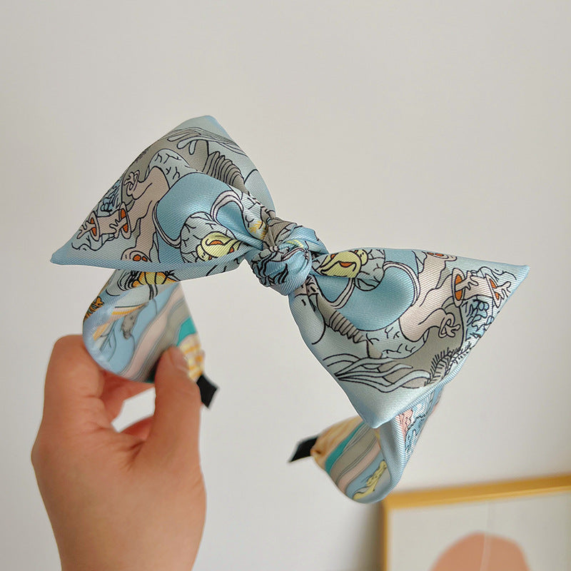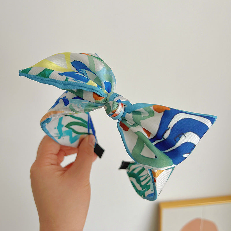 Fashion Print Bow Knot Wide Cloth Headband for Women