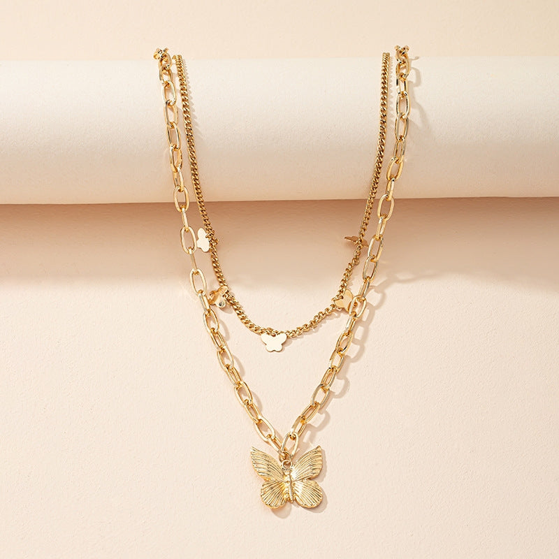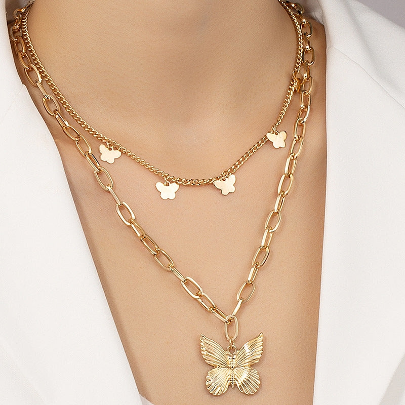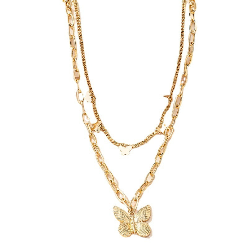 Fashion Crystal Butterfly Layered Alloy Necklace