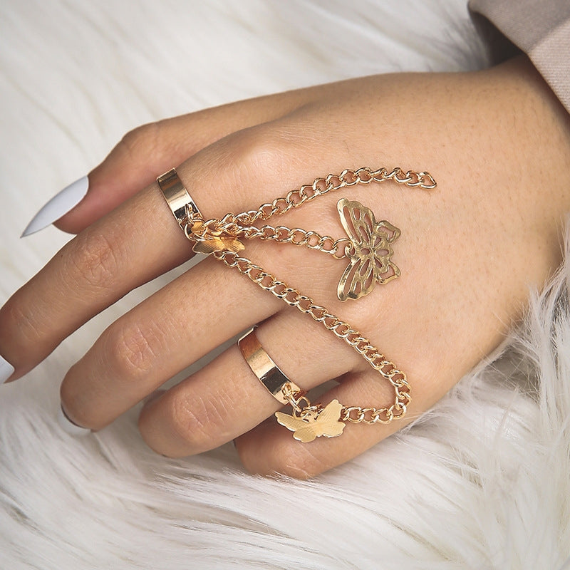Fashion Adjustable Butterfly Pendant Chain Ring