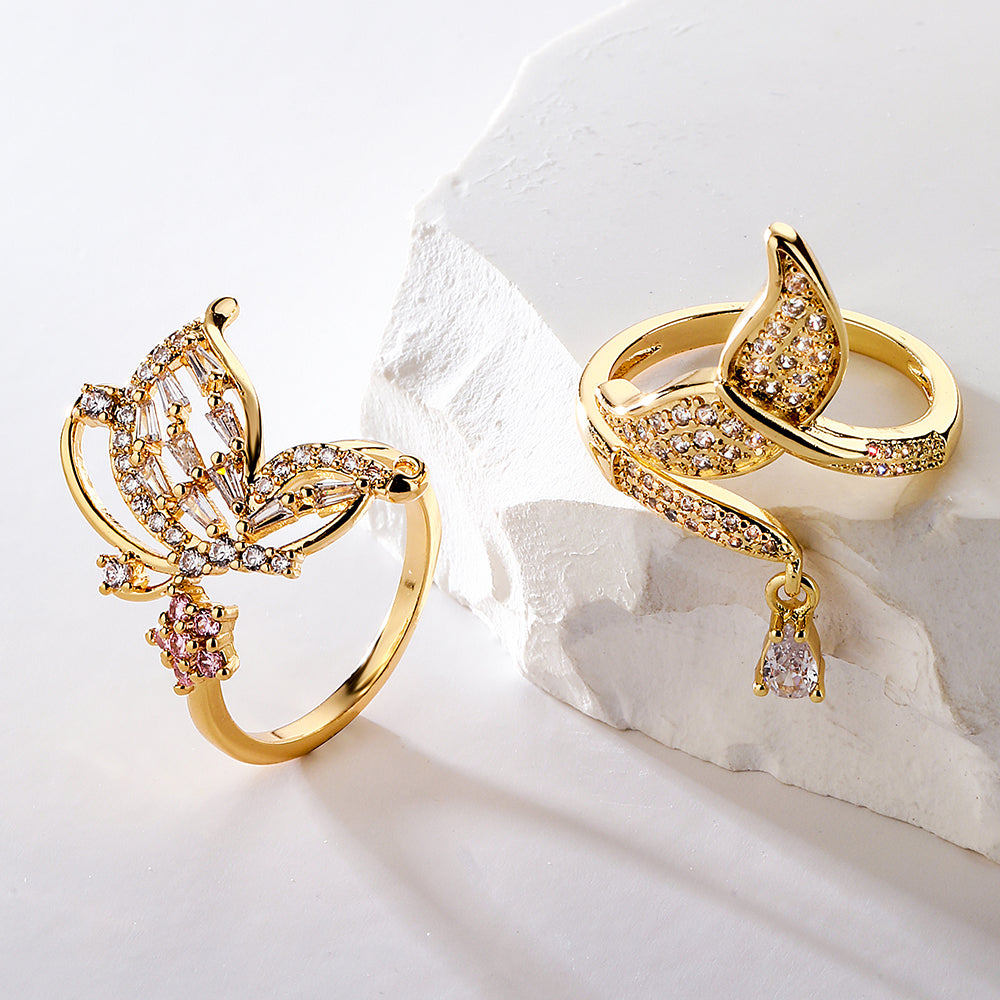 Fashion Geometric Butterfly Zircon Gold Plated Open Ring