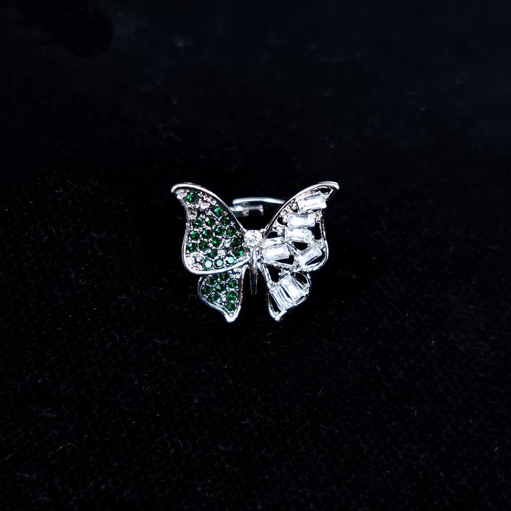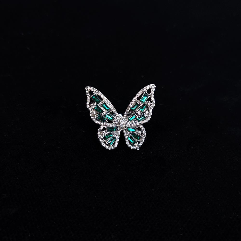 Butterfly ring with silver green diamonds