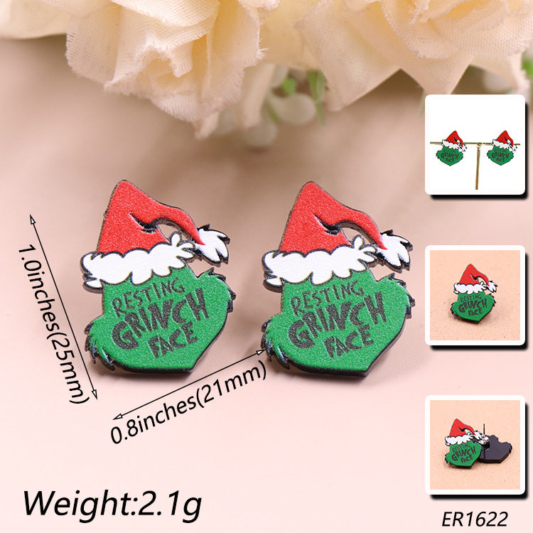 Fashion Christmas Grinch Acrylic Ear Studs and DIY Accessories Set