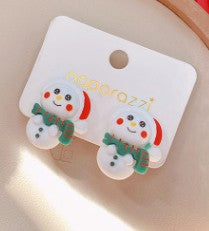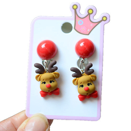 Acrylic Christmas Tree Snowman Elk Women's Ear Clips - Colorful Cartoon Design