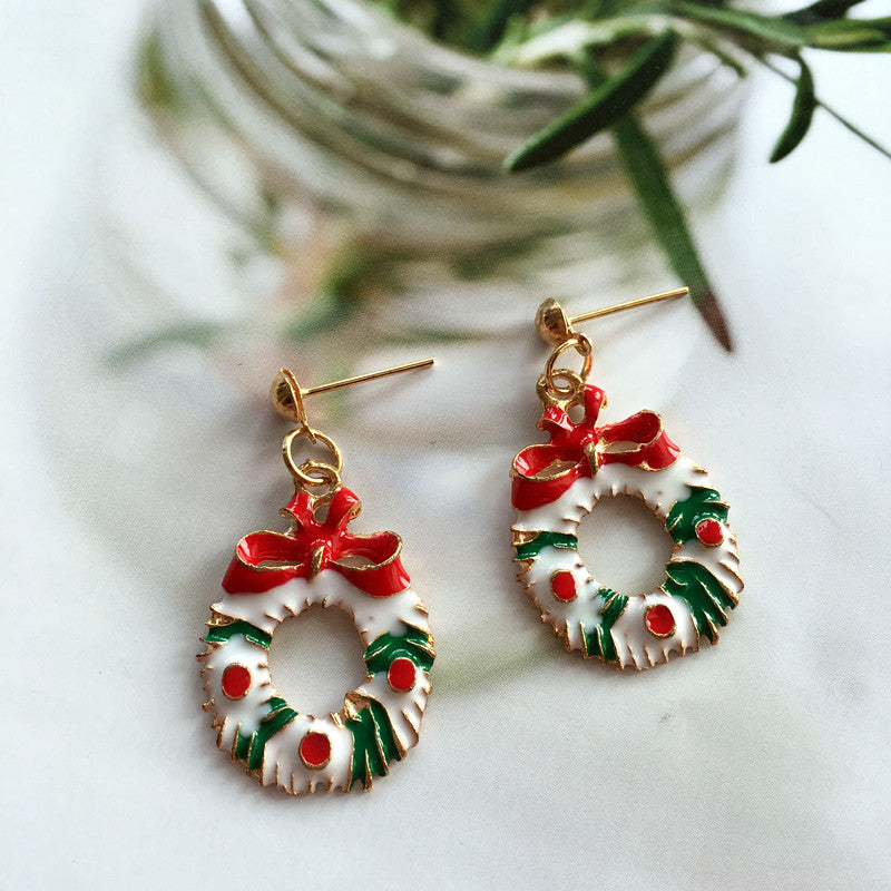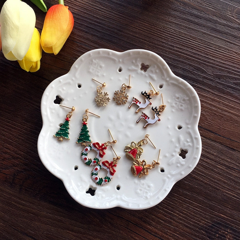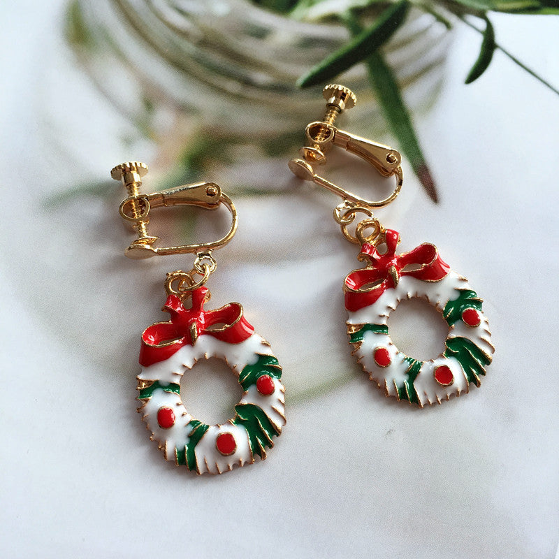 Fashion Christmas Tree Wreath Deer Alloy Plated Women's Drop Earrings Ear Clips - 1 Pair