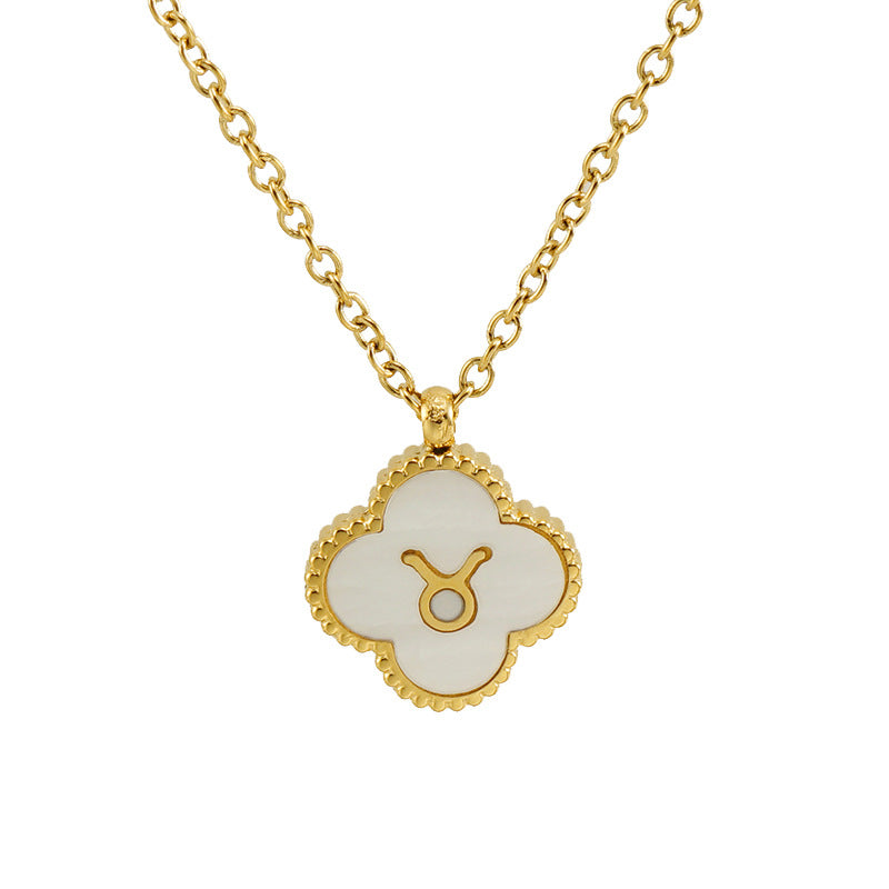 Fashion Clover Constellation Titanium Steel Pendant Necklace with Inlay Shell