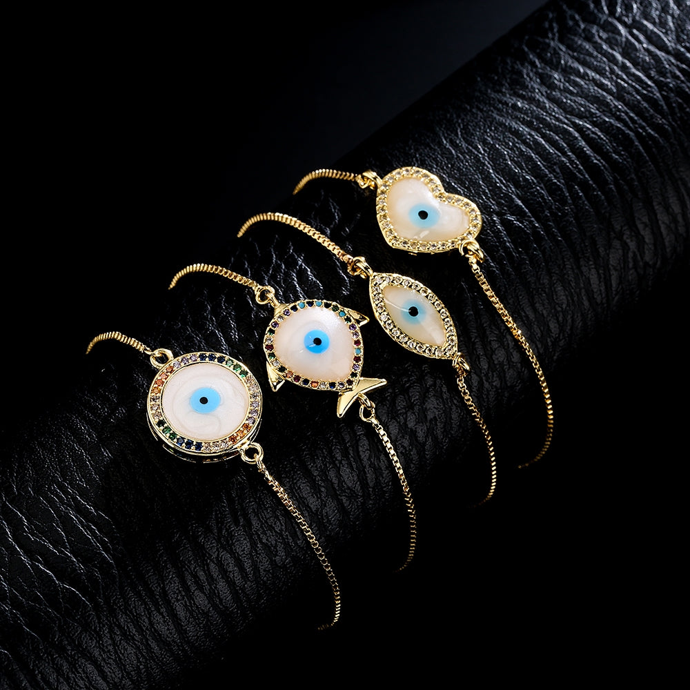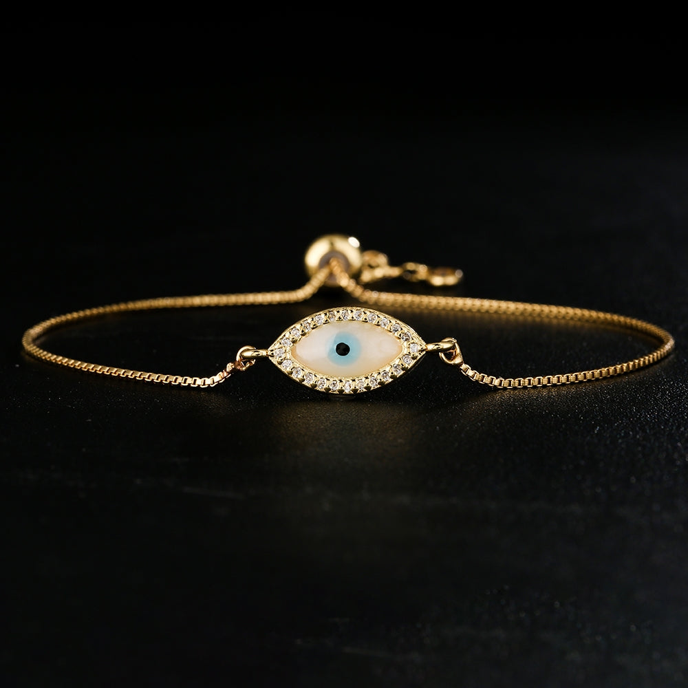 18k Gold Plated Zircon Evil Eye Adjustable Bracelet