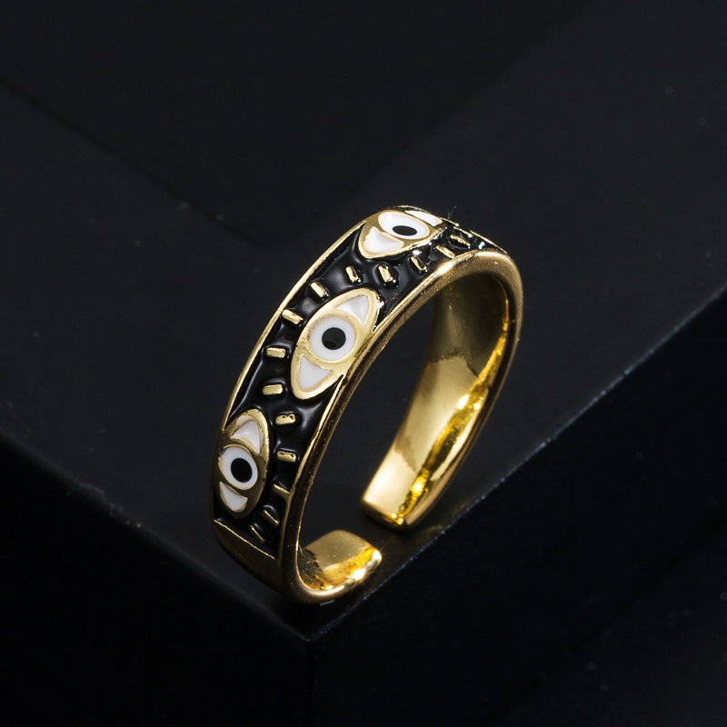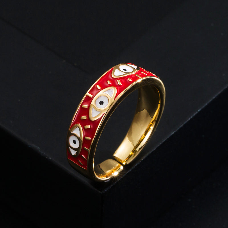 Fashion Copper Plated Colorful Evil Eye Open Ring for Women