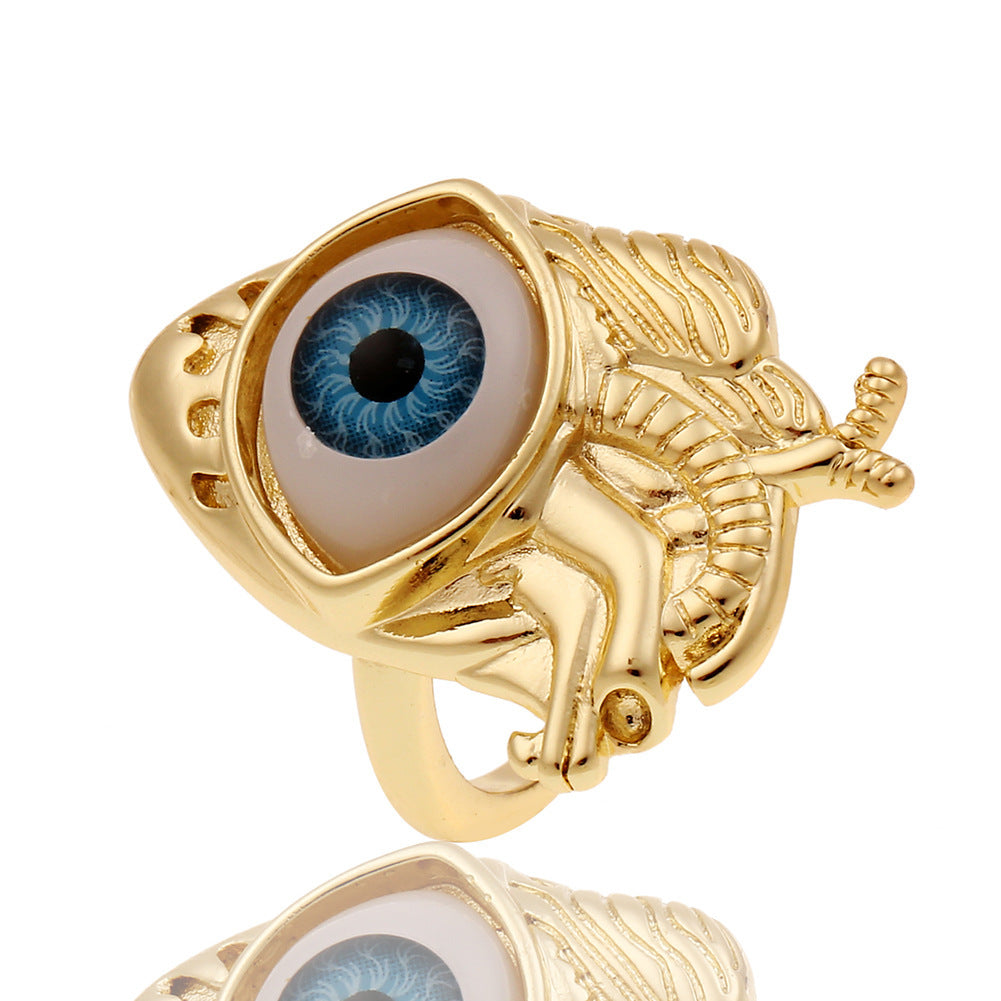 Fashion Copper Plated Gold Evil Eye Women's Minimalist Tail Ring