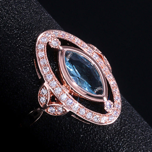 Fashion Copper Plated Rose Gold Micro-set Zircon Ring for Women