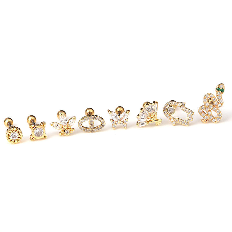 Fashion Zircon Copper and Stainless Steel Ear Studs