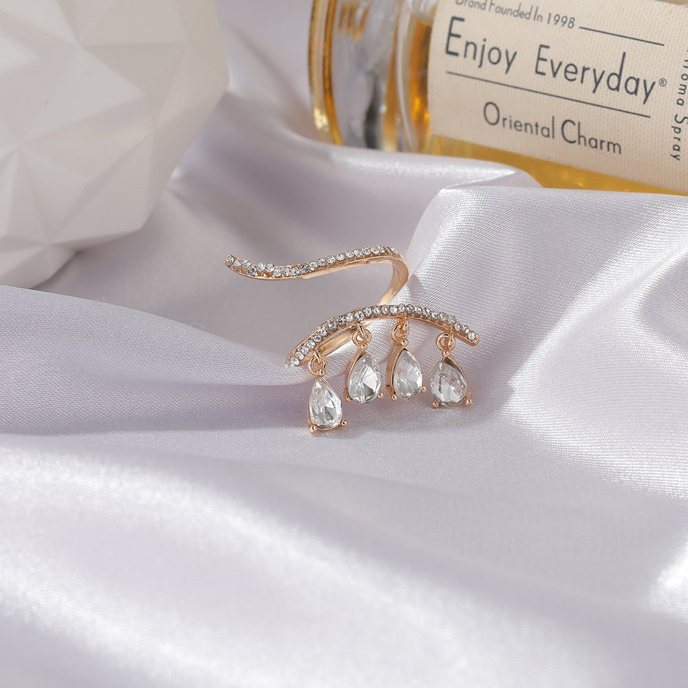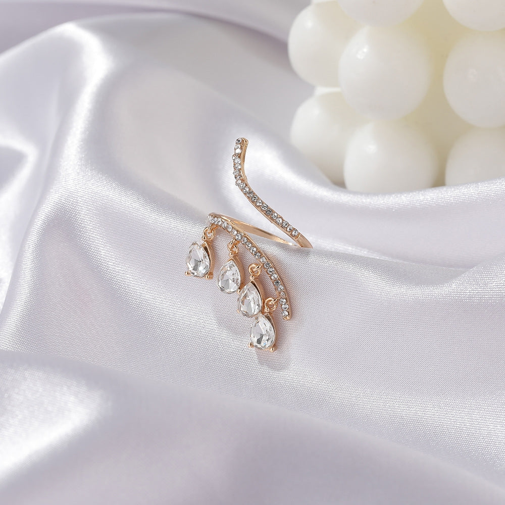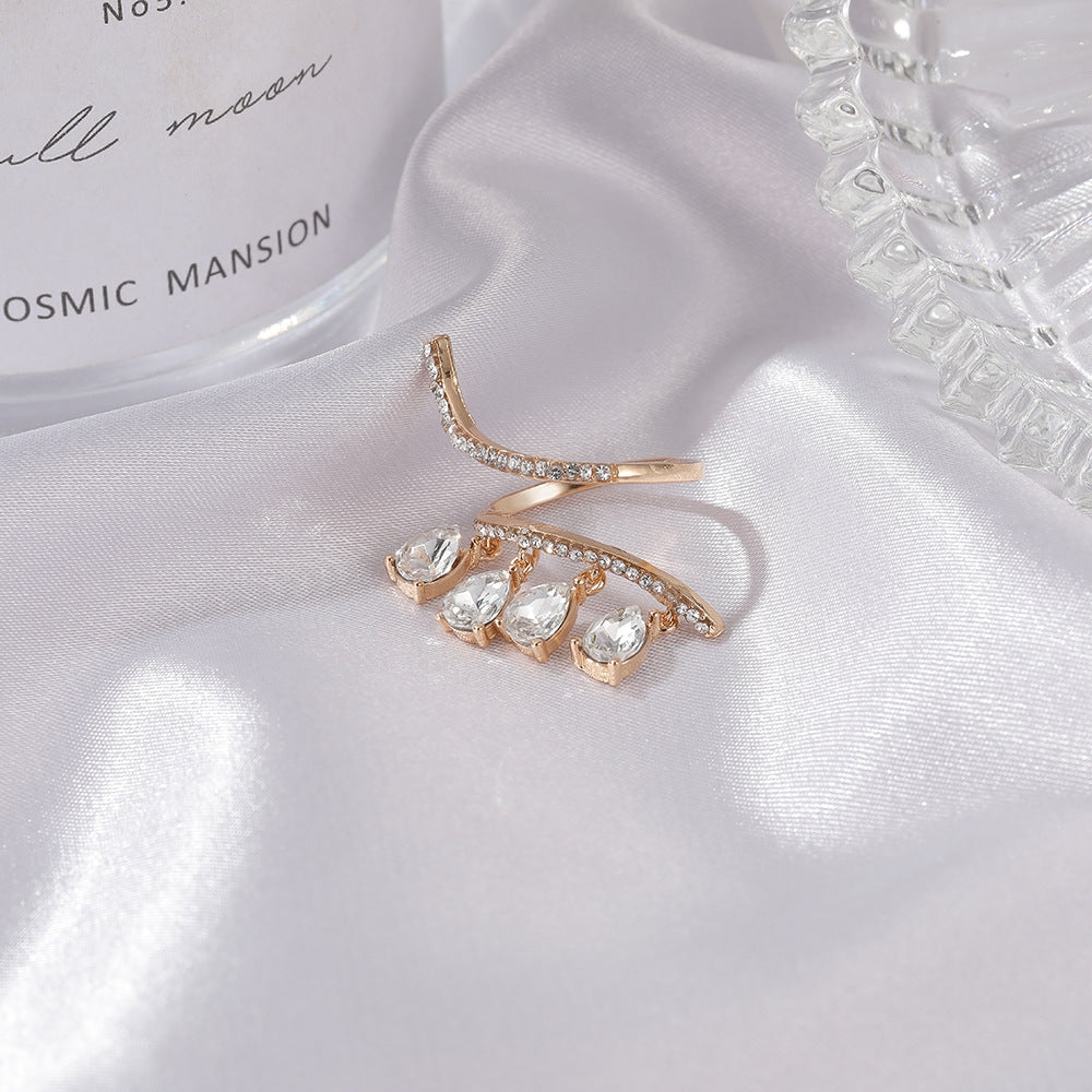 Fashion Creative Zircon Teardrop Pendant Adjustable Ring