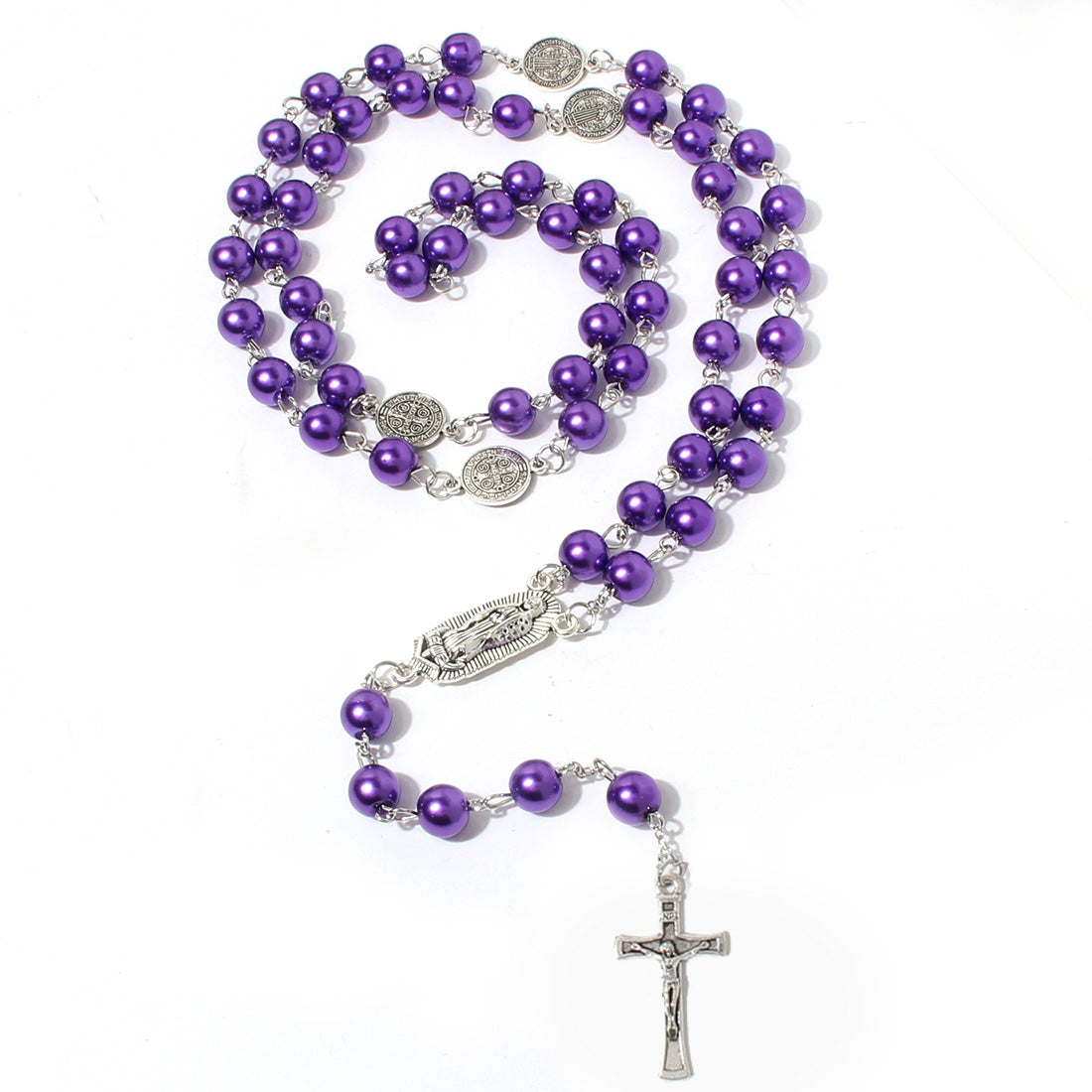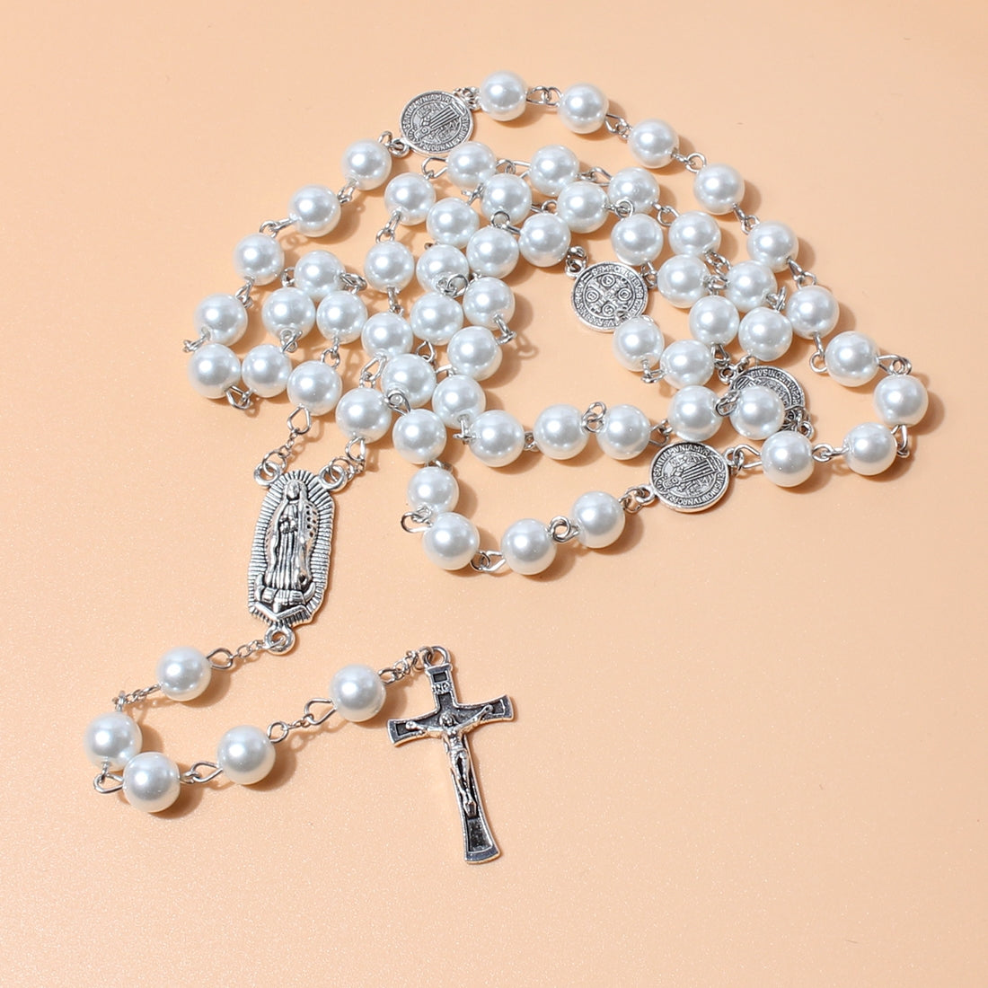 Vintage Cross Imitation Pearl Beaded Pendant Necklace