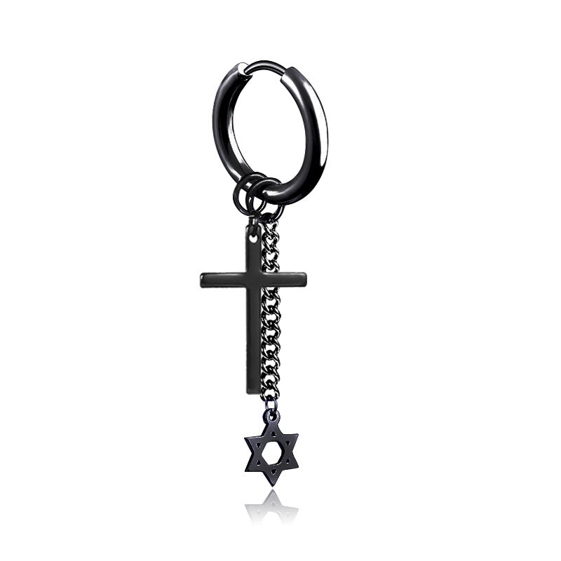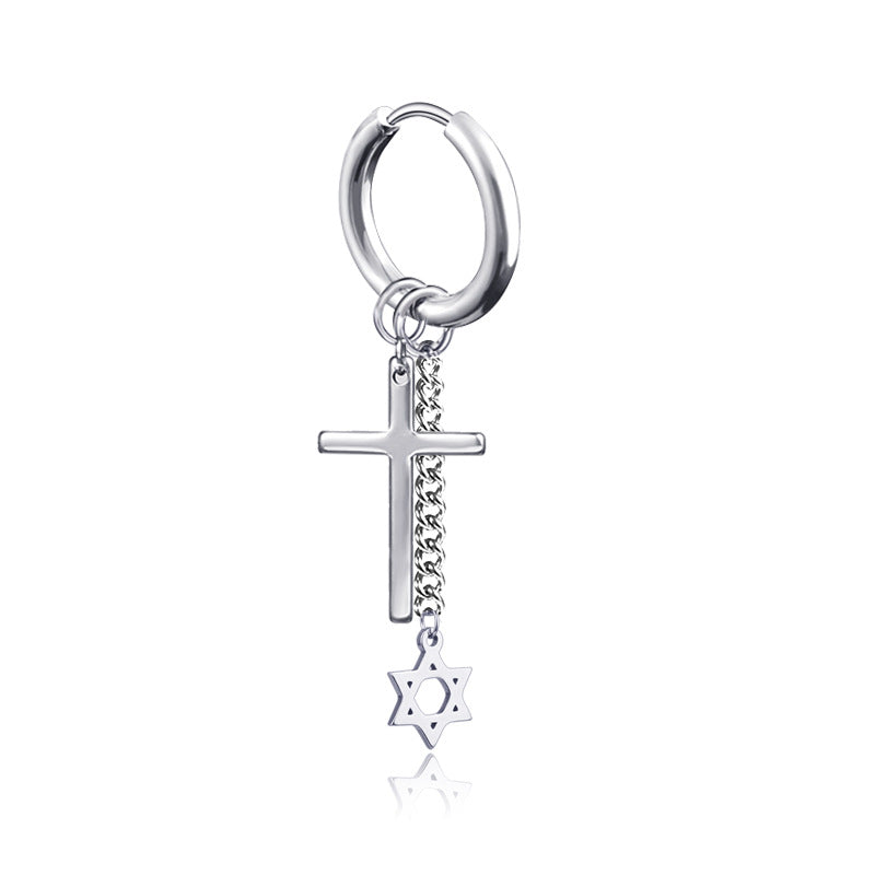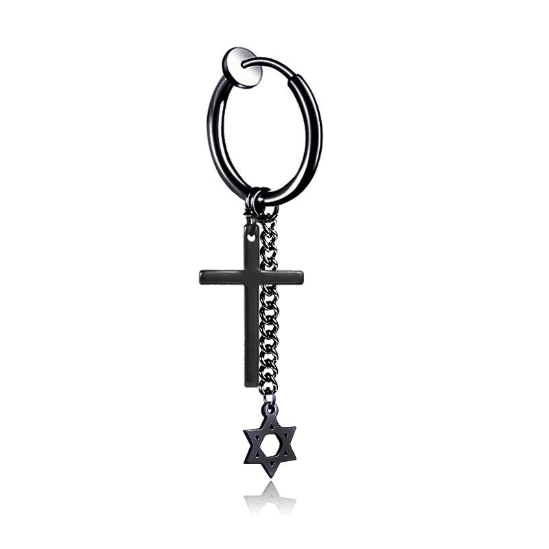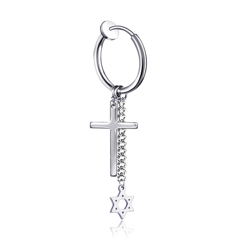 Fashion Cross Tassel Chain Stainless Steel Earrings - Clip-On Hoop Design