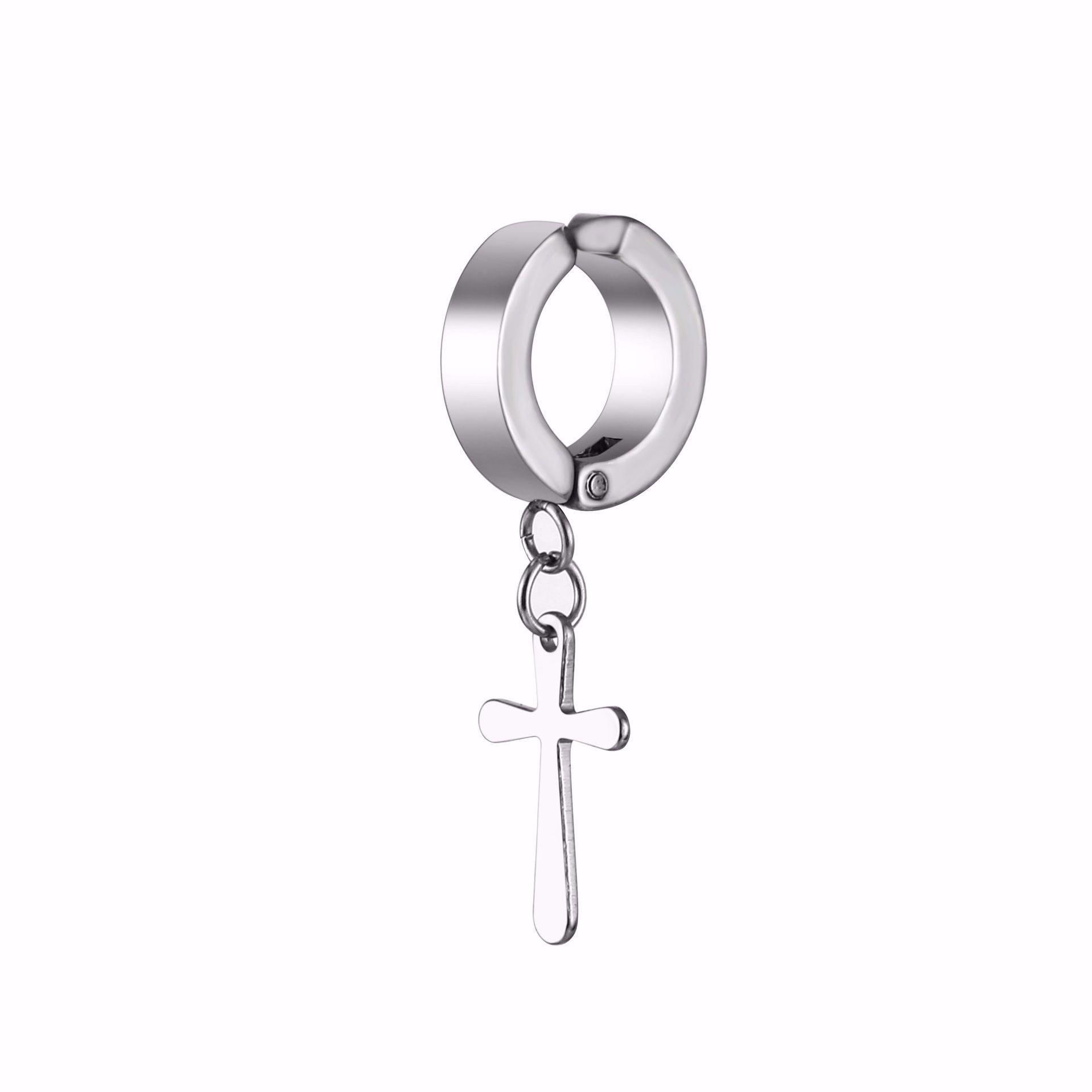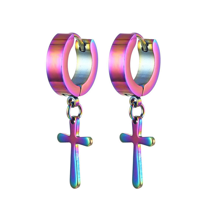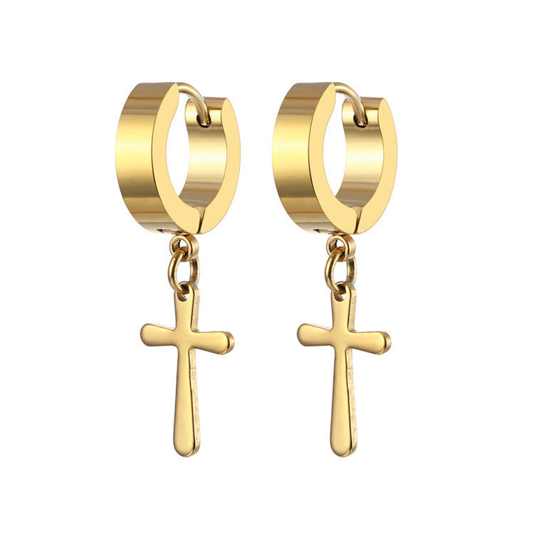 Fashion Titanium Steel Cross Drop Earrings