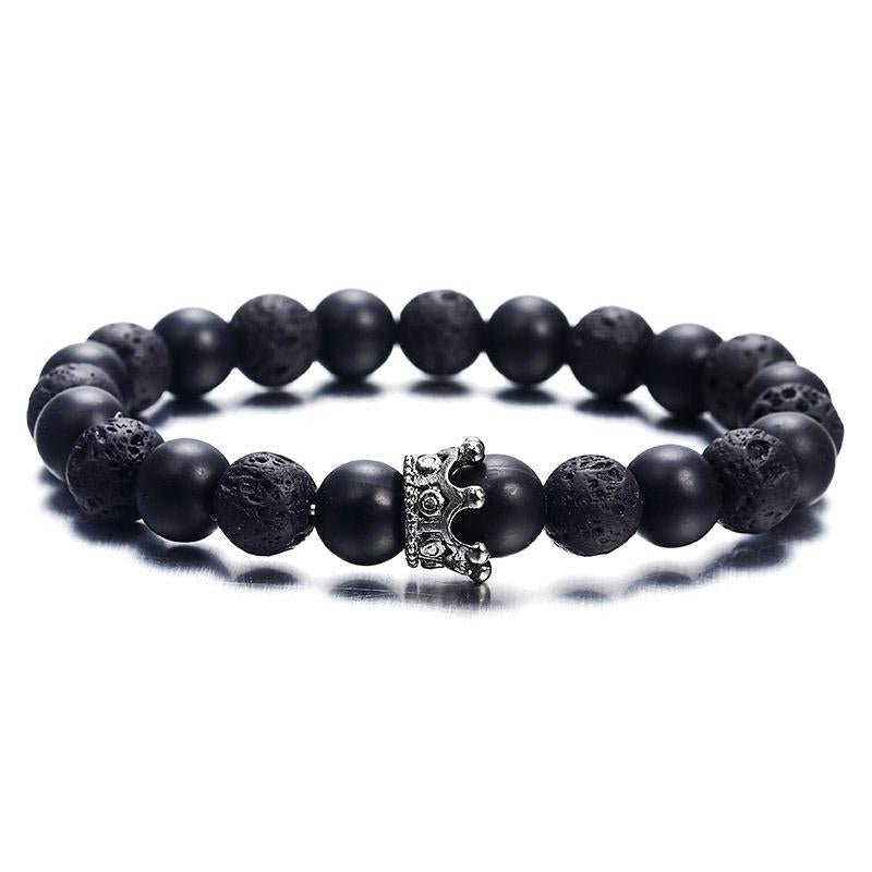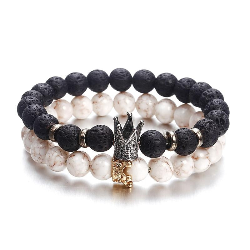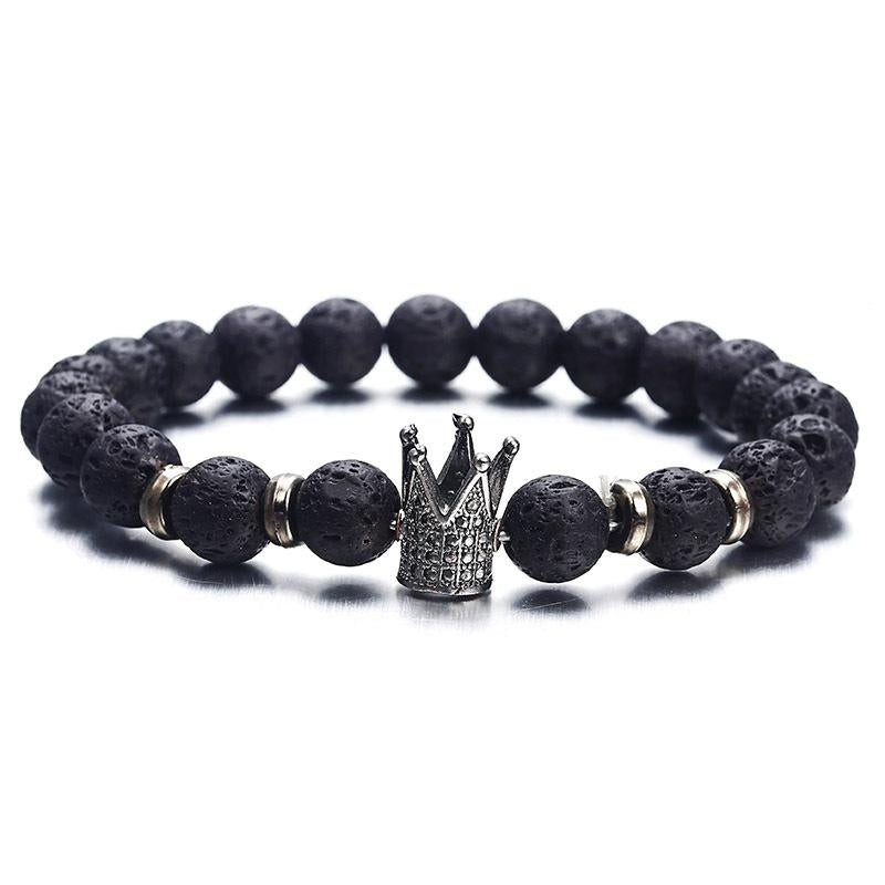 Fashion Crown Alloy Plated Bracelet with Volcanic Stone and Acrylic Beads