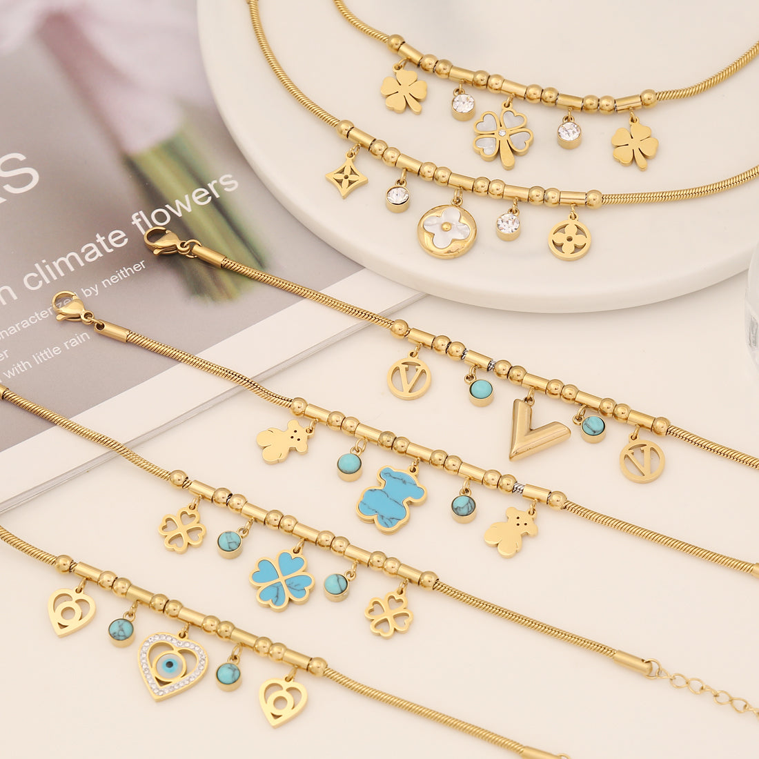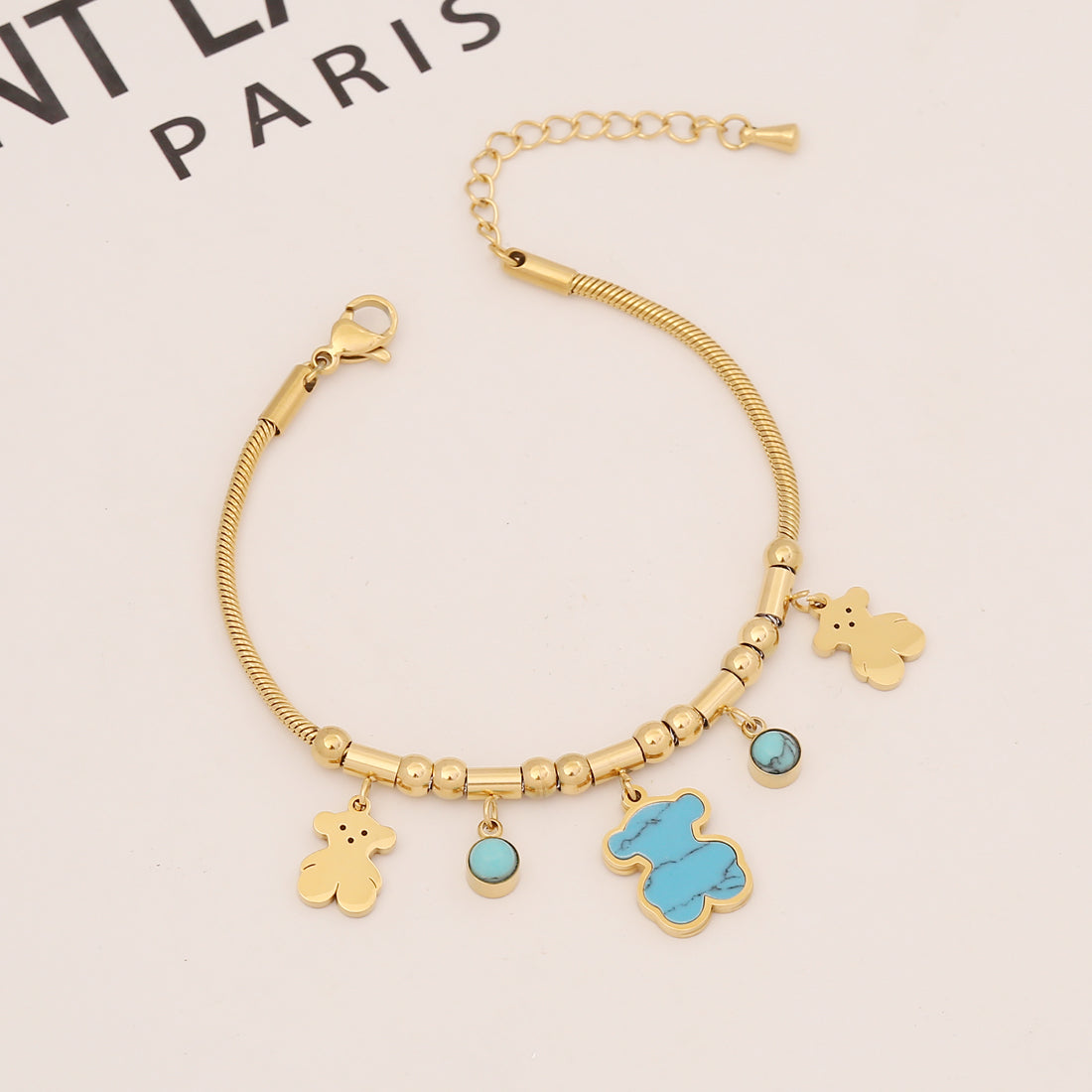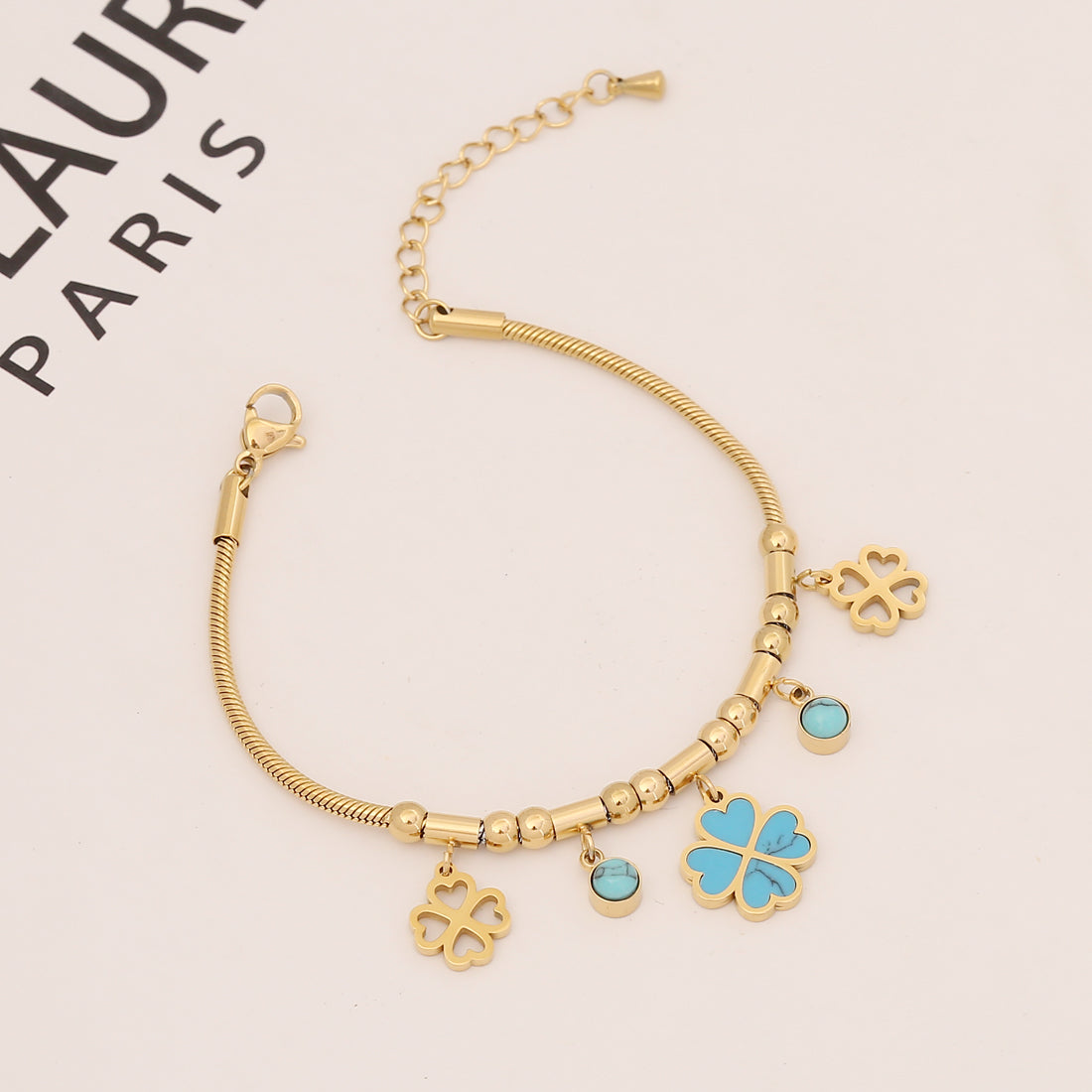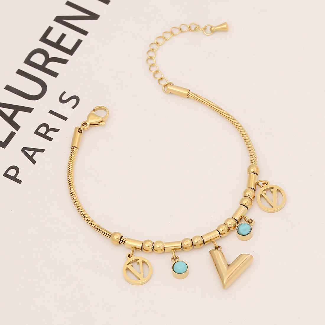 Fashion Devil's Eye Heart Shape Turquoise V-Shaped Stainless Steel Bracelet