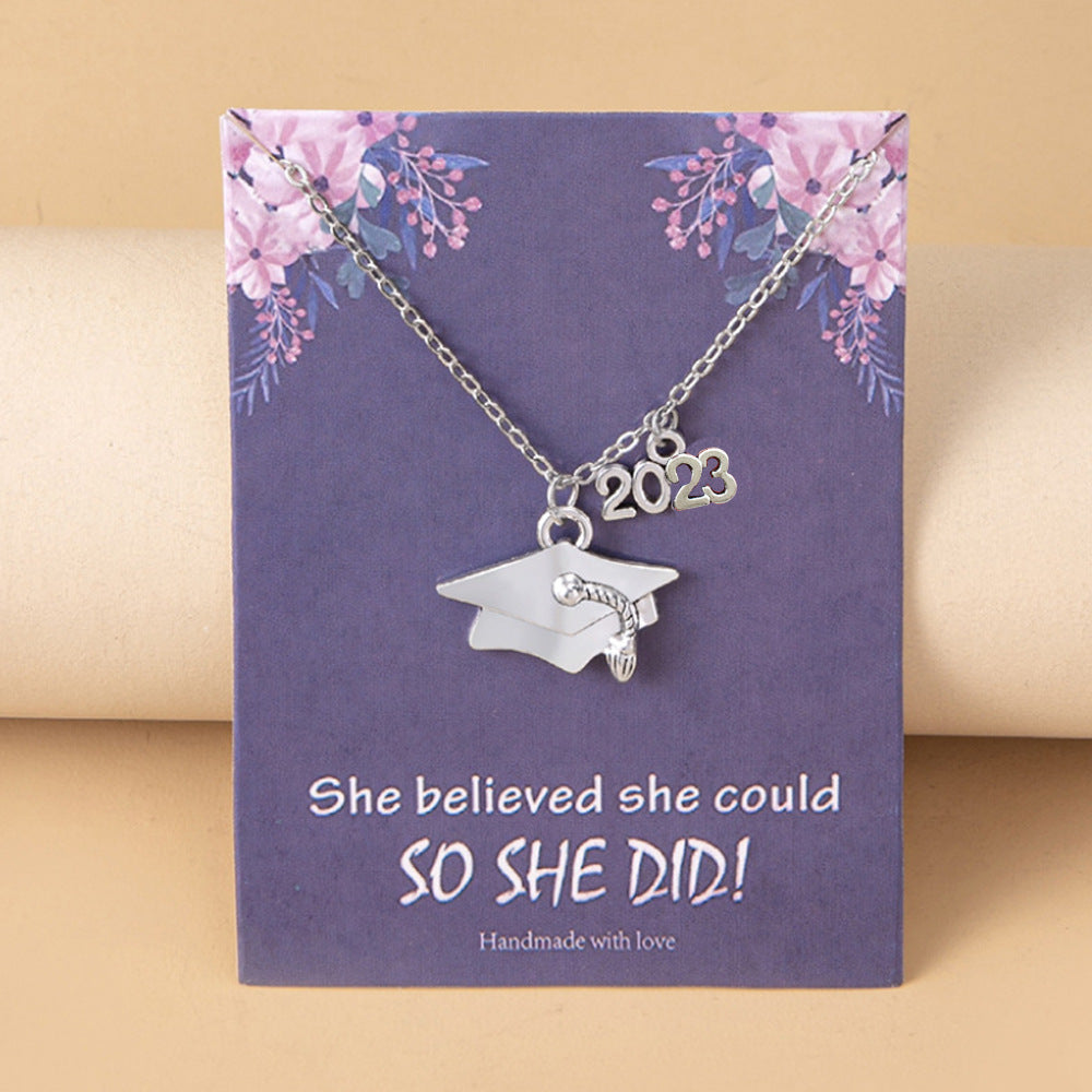 Graduation Cap Stainless Steel Pendant Necklace with Inspirational Card