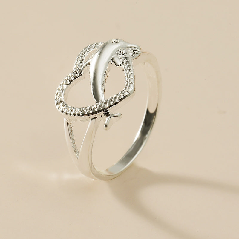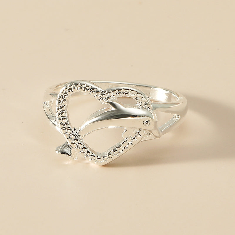 Fashion Dolphin Heart Hollow Alloy Women's Ring