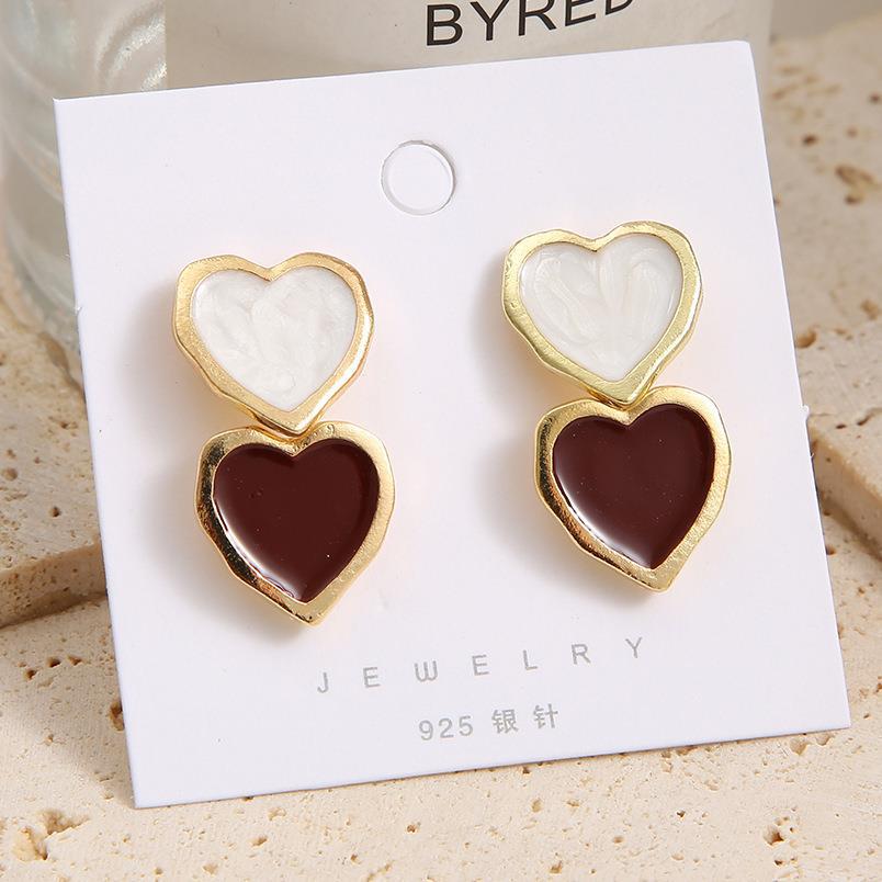 Creative Retro Pearl Heart Drop Earrings - Double Layer Alloy Design