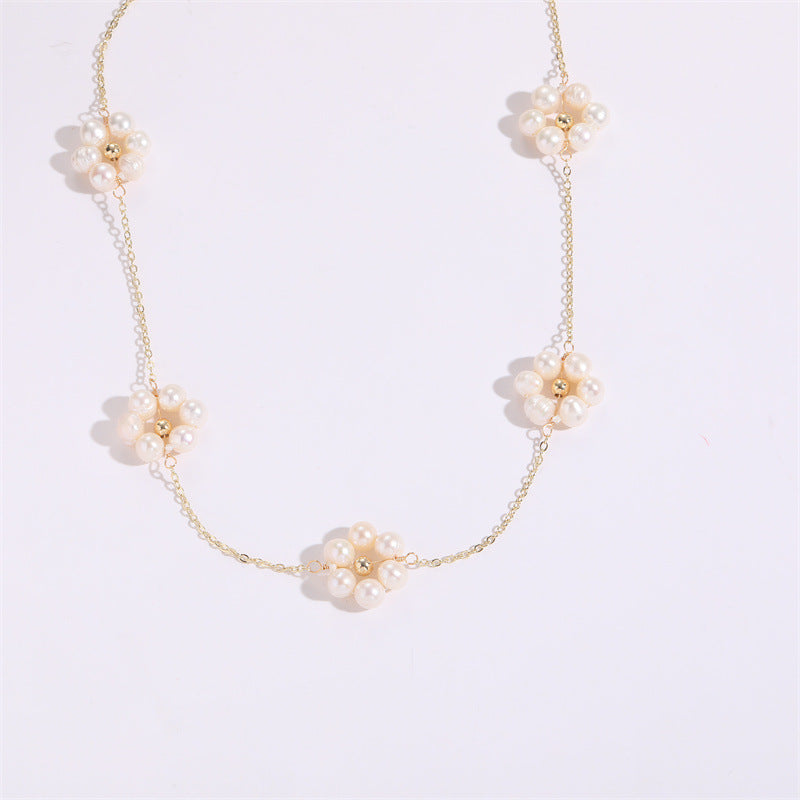 14K Gold Plated Flower and Freshwater Pearl Copper Necklace