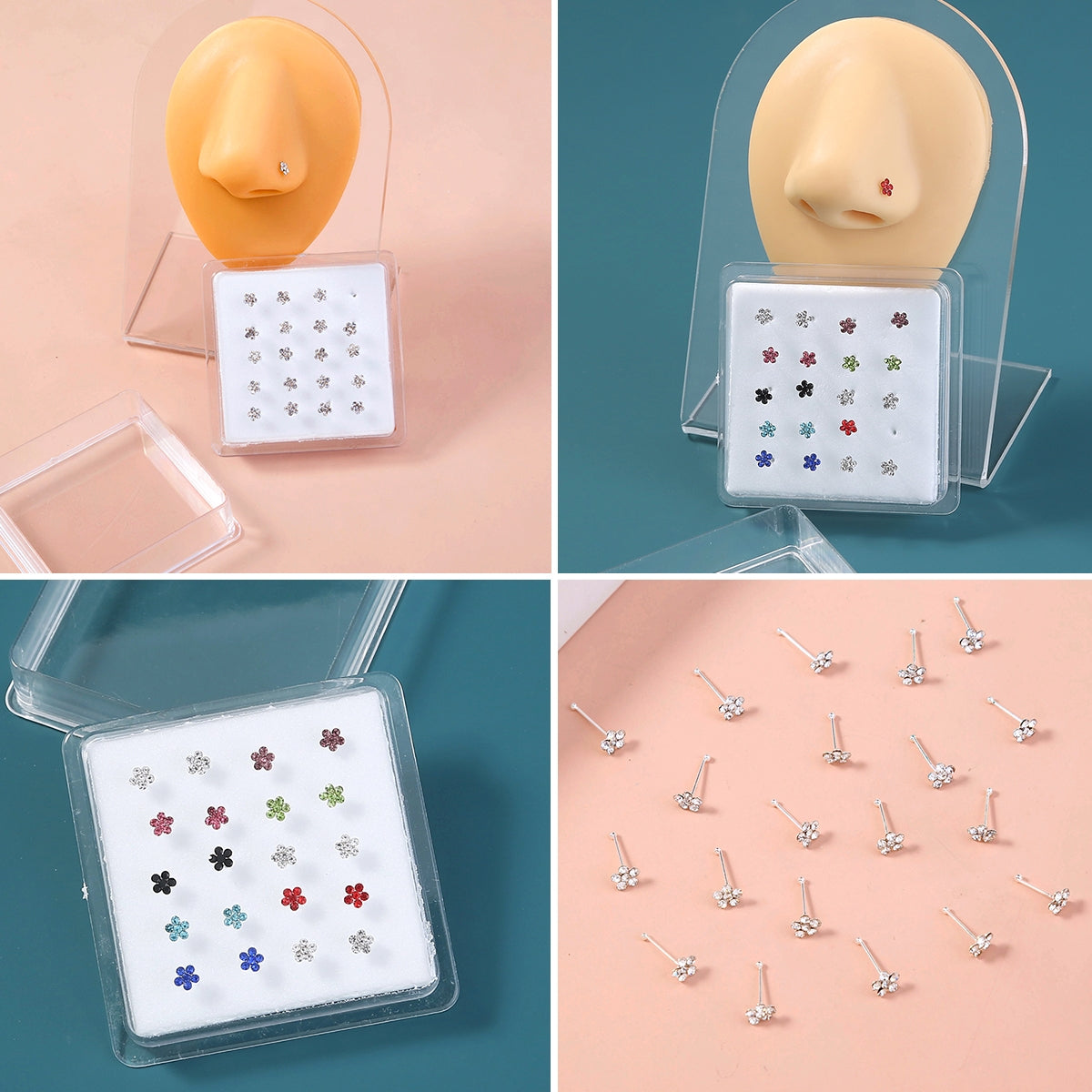 Fashion Flower Rhinestone Nose Stud Set