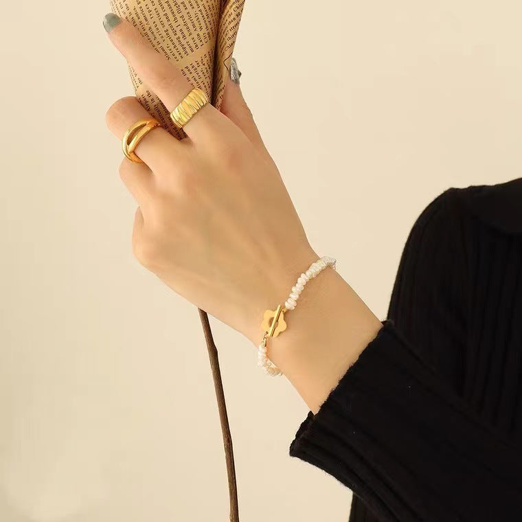Elegant Pearl & Flower Titanium Steel Necklace - 18K Gold Plated Freshwater Design