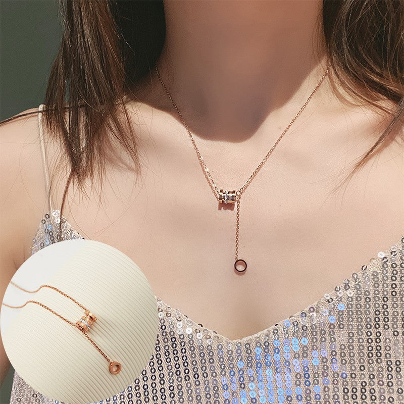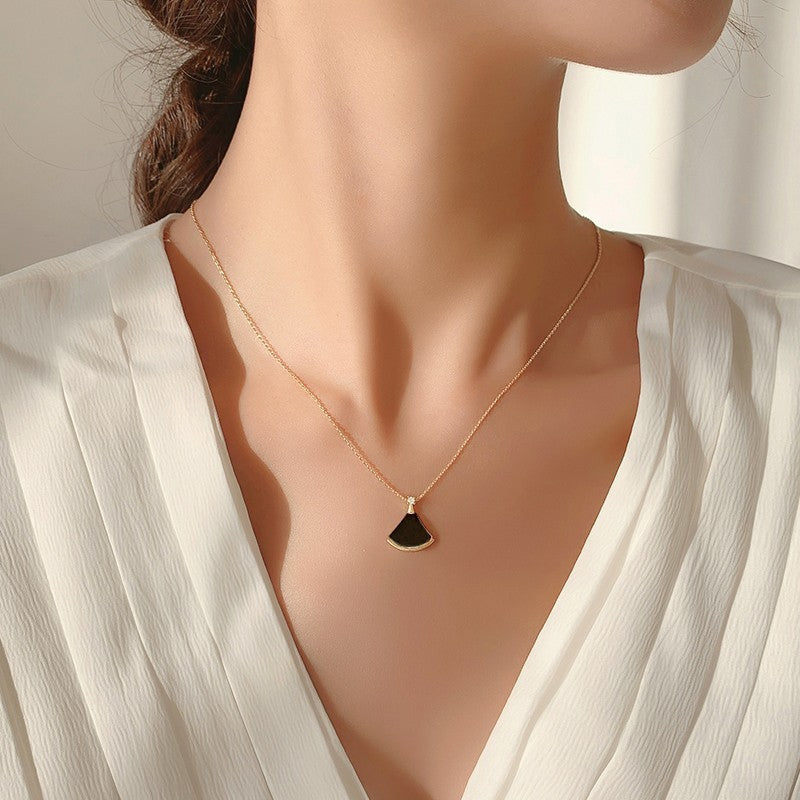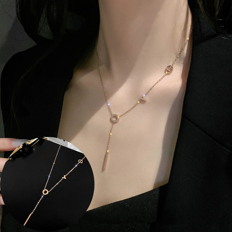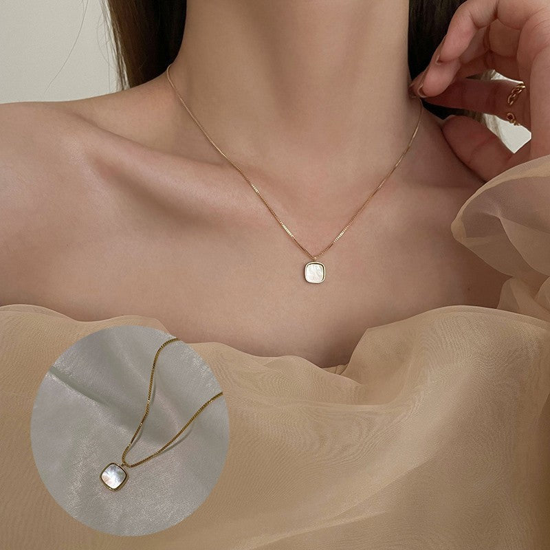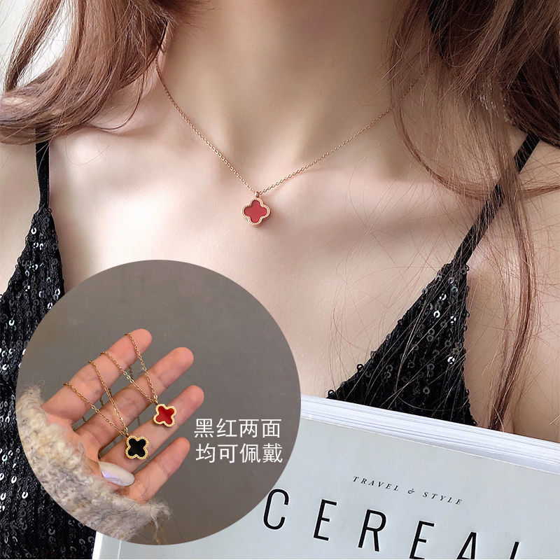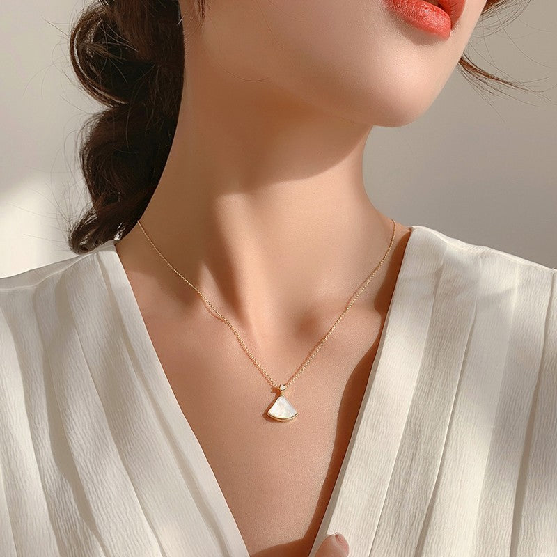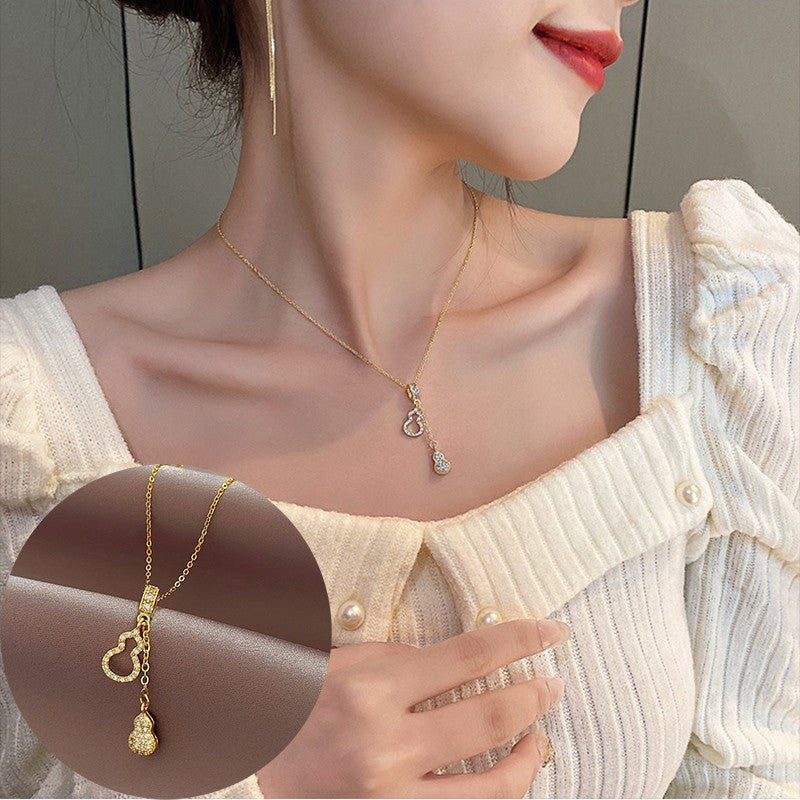 Fashion Titanium Steel Clover & Gourd Pendant Necklace with Shell Inlay and Tassel Design