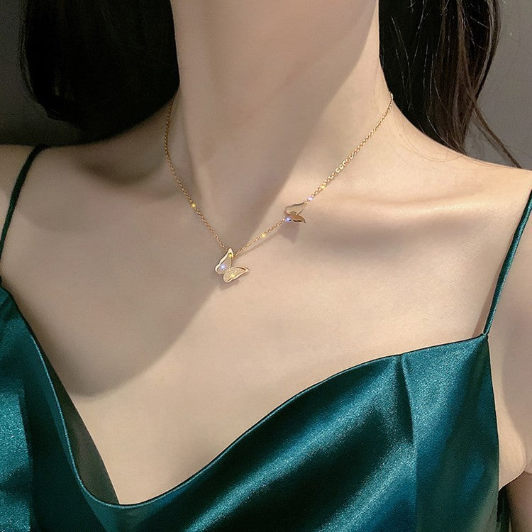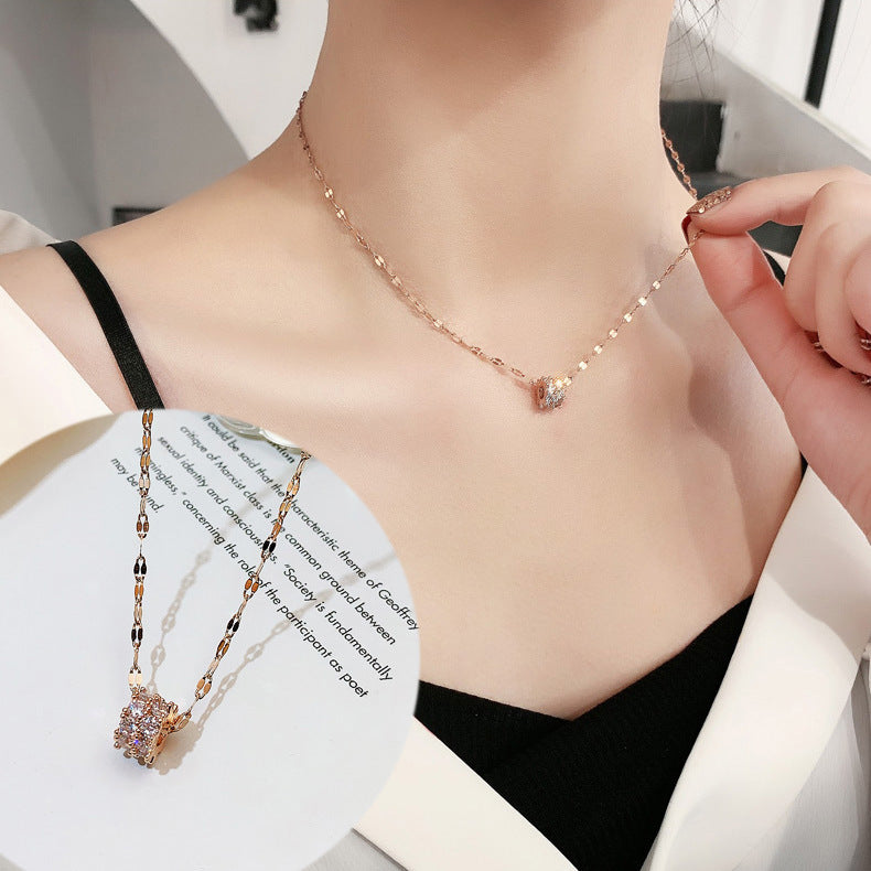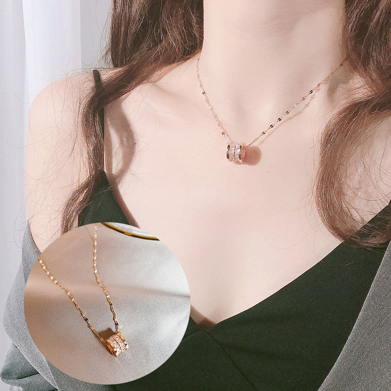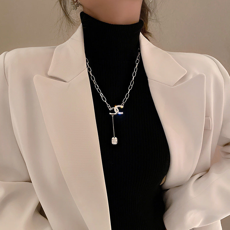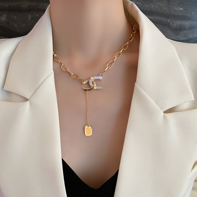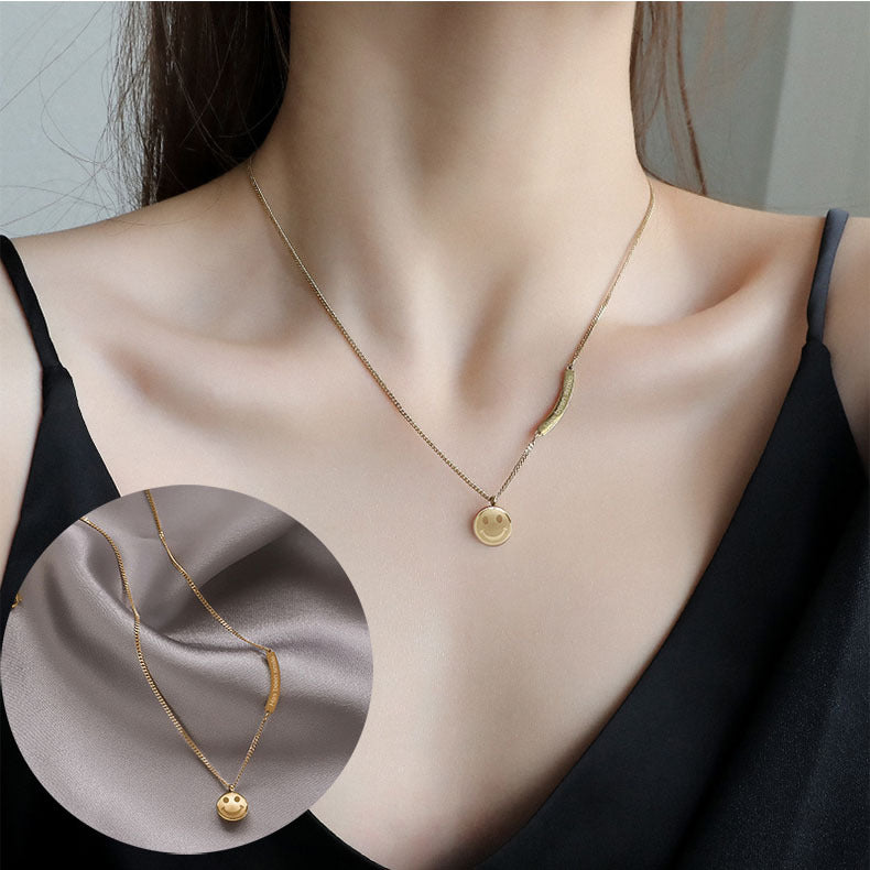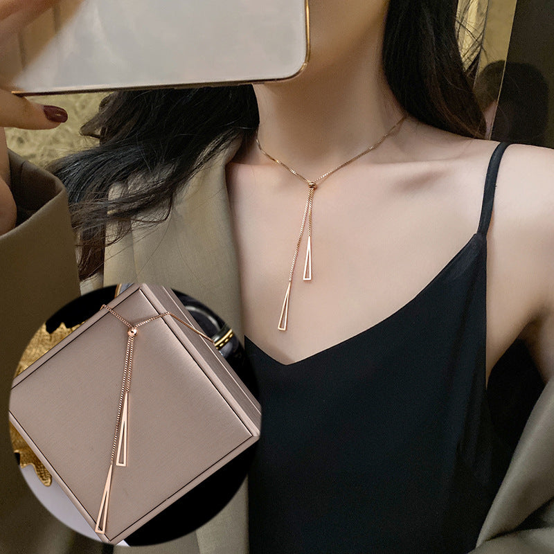 Fashion Titanium Steel Clover & Gourd Pendant Necklace with Shell Inlay and Tassel Design