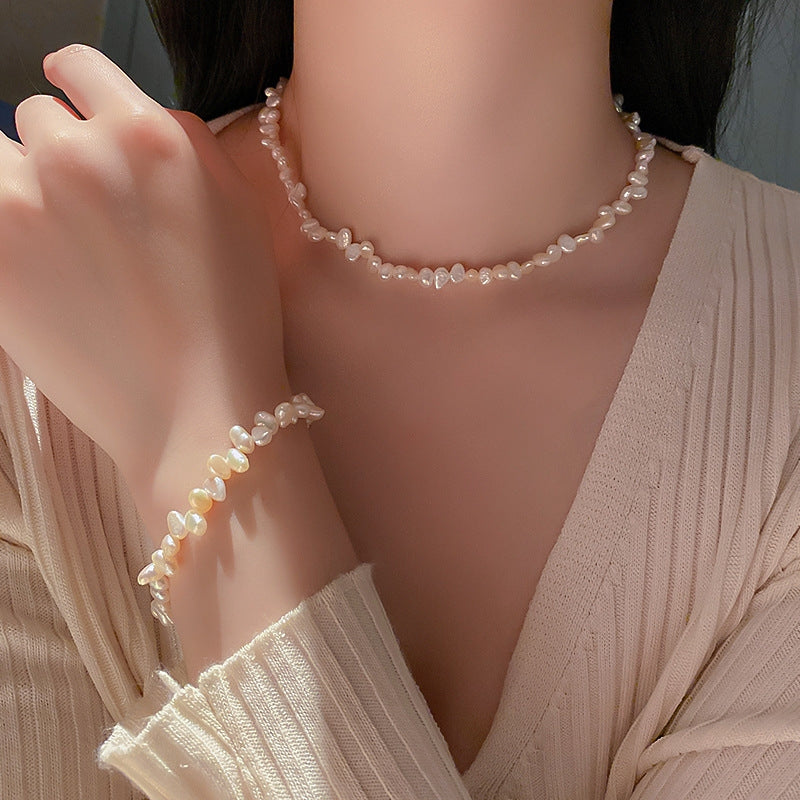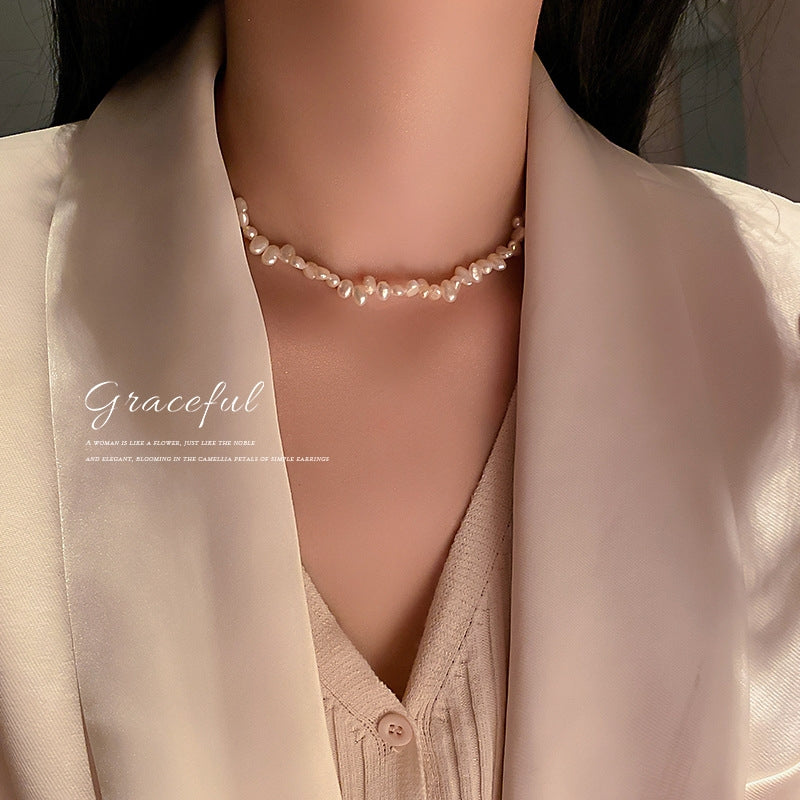Fashion Freshwater Pearl Irregular Design Alloy Choker Necklace for Women