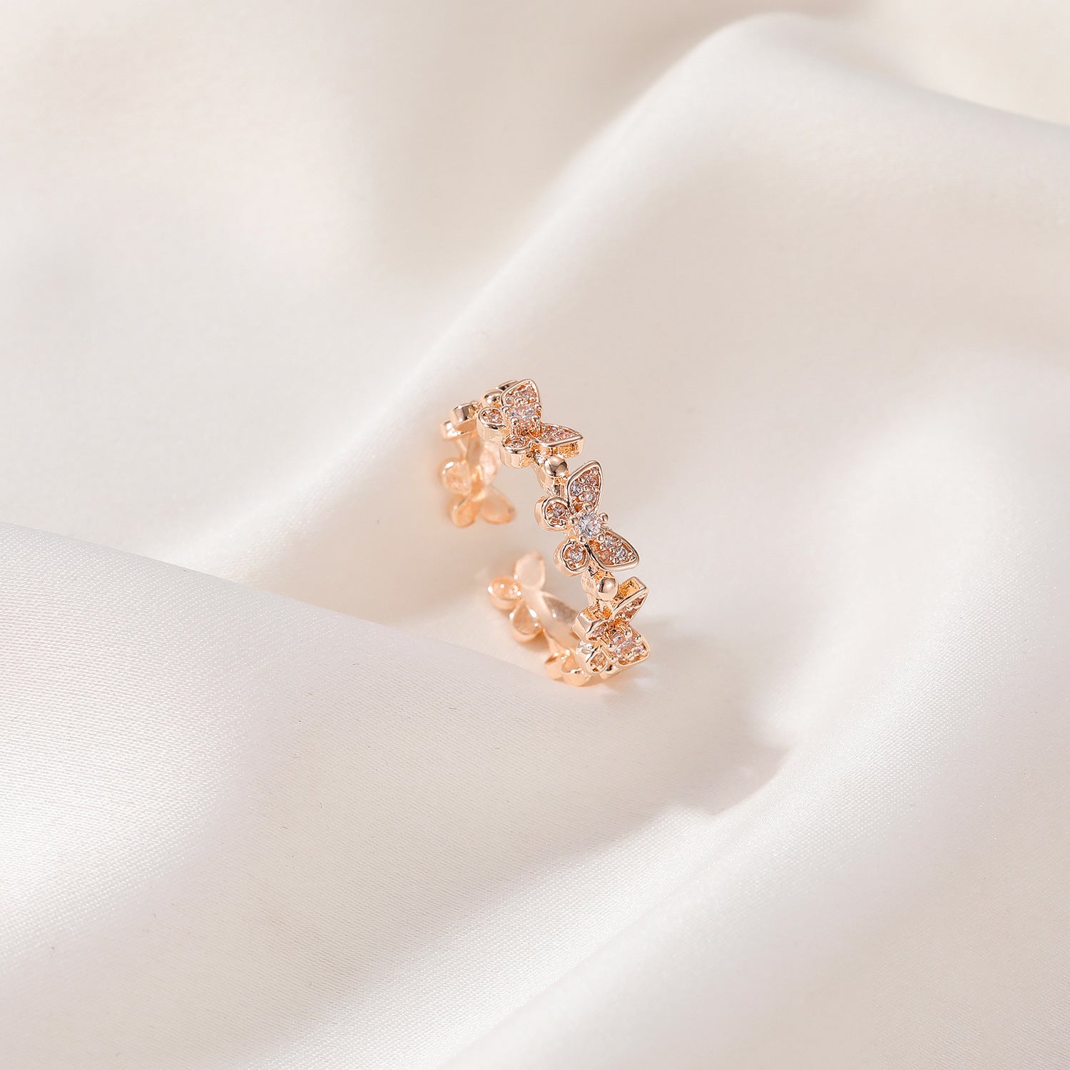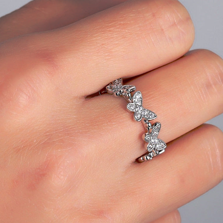 Fashion 925 Silver Diamond Butterfly and Floral Open Ring