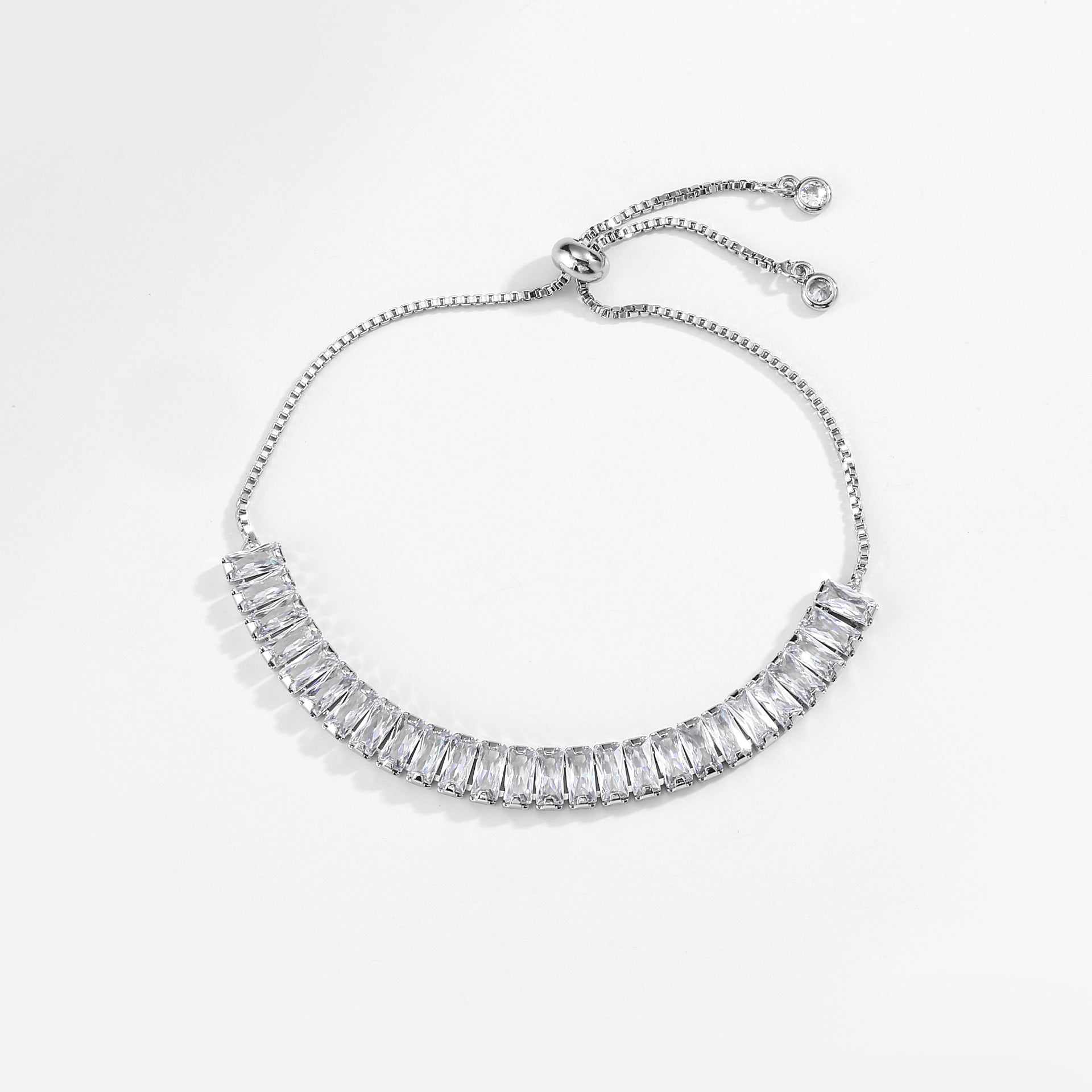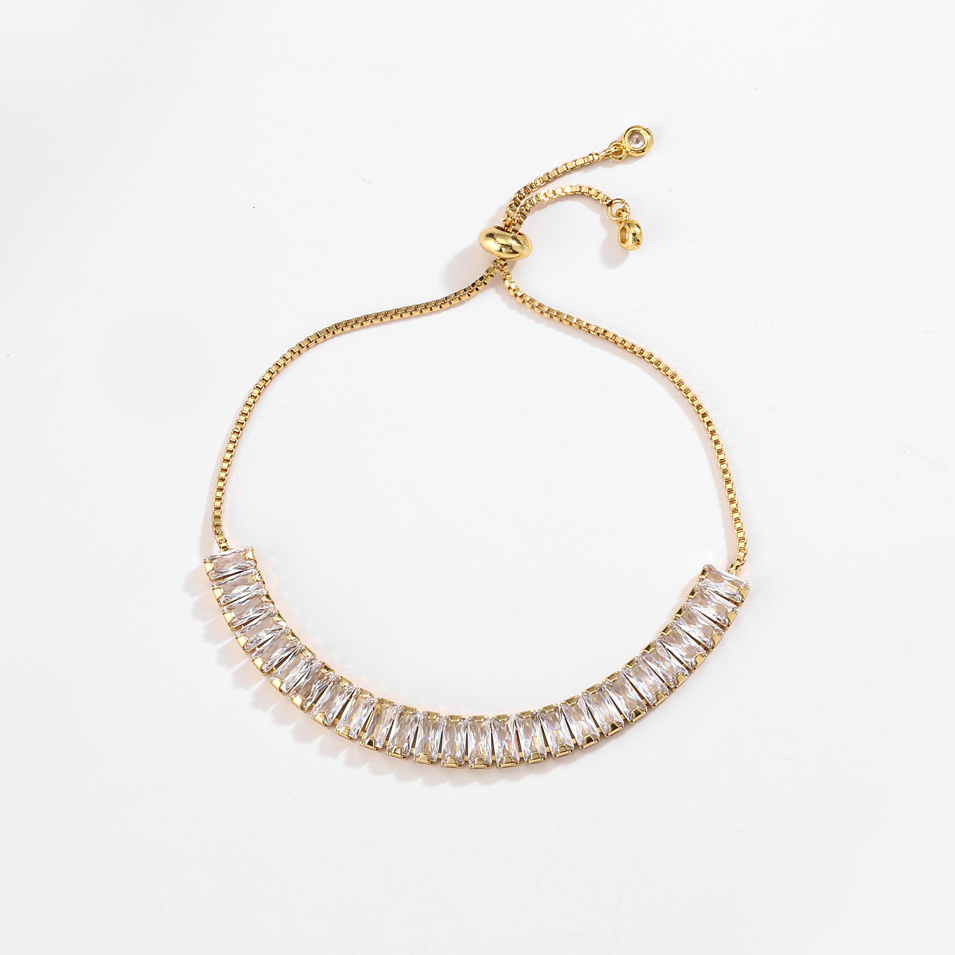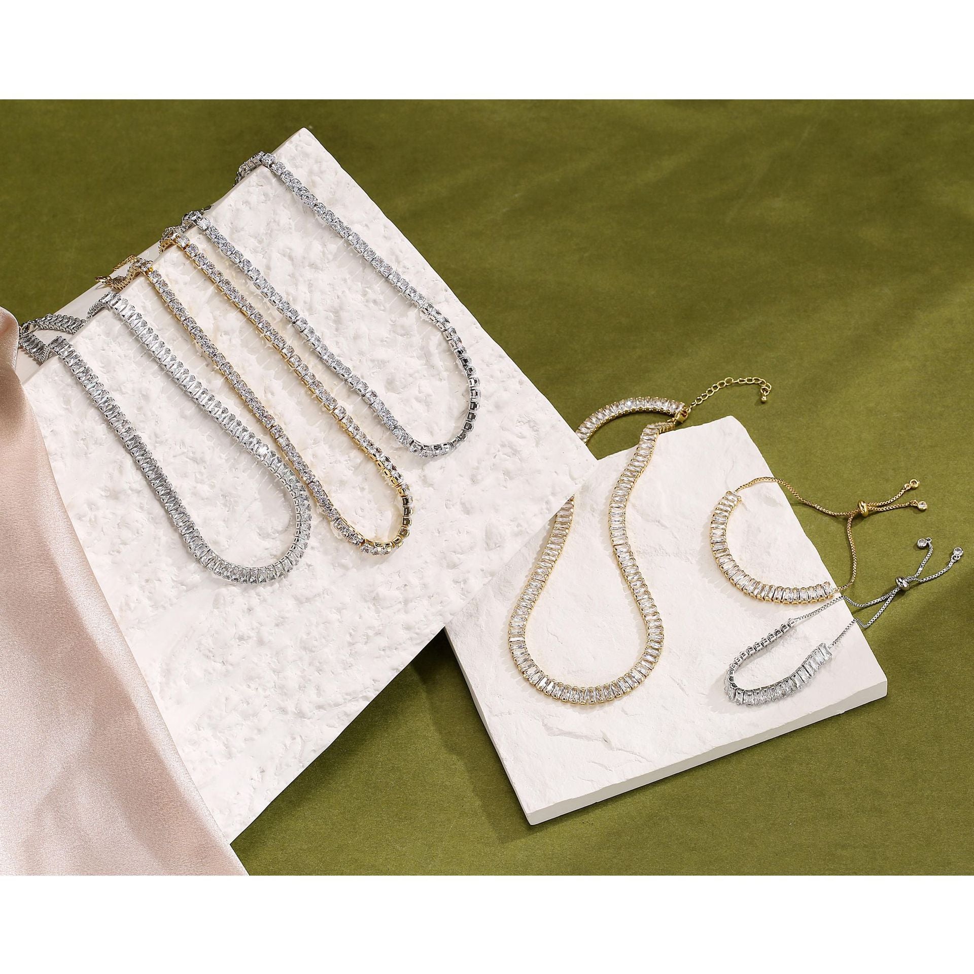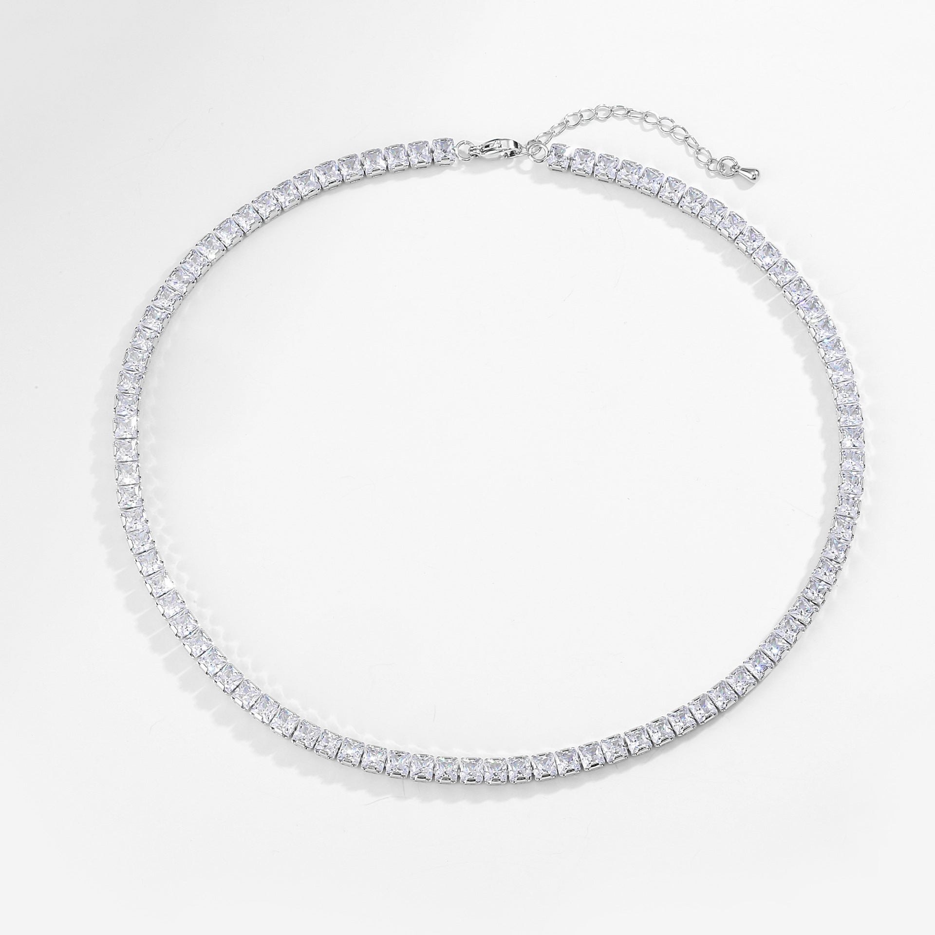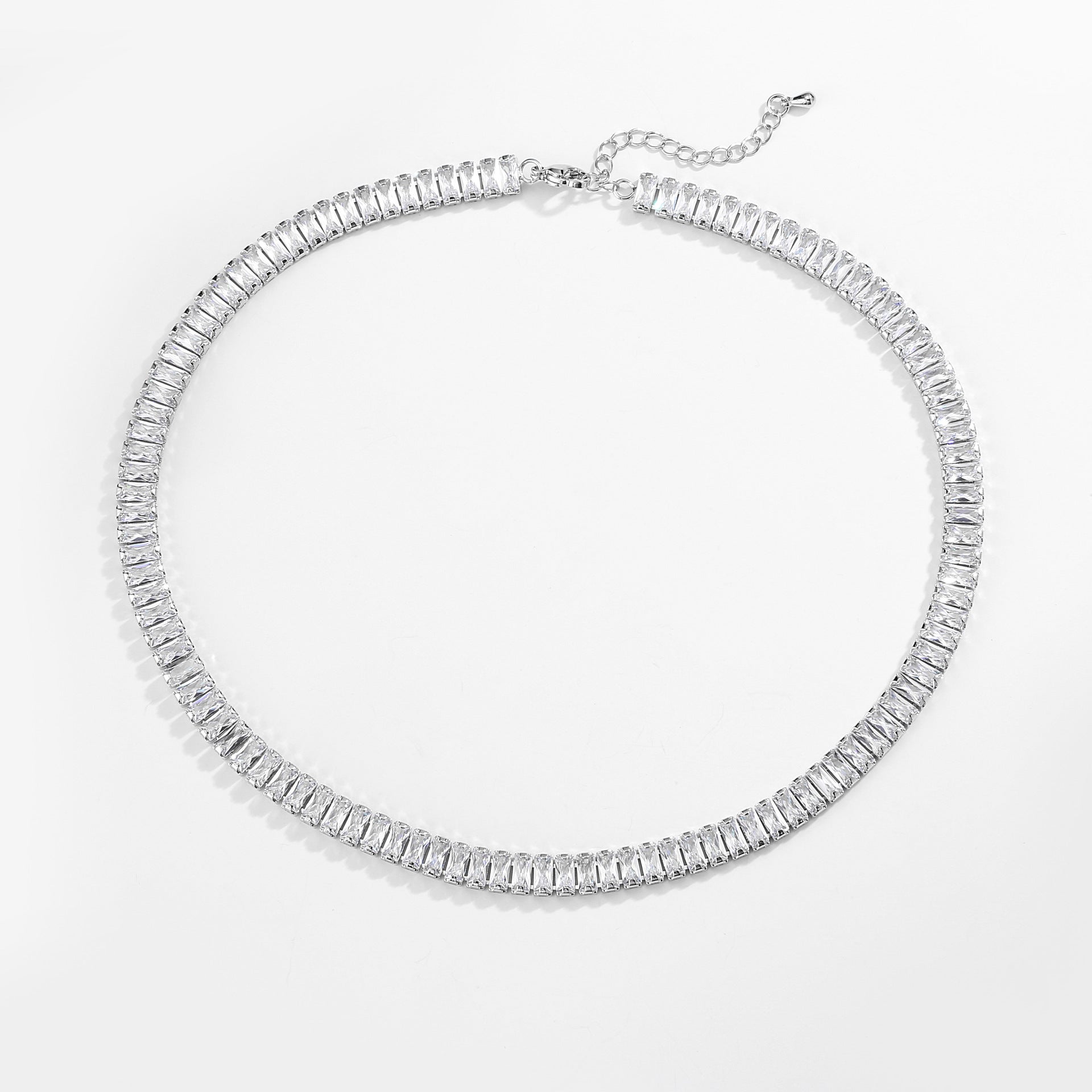 Fashion Full Diamond T Square Zirconia Chain Necklace Copper Jewelry