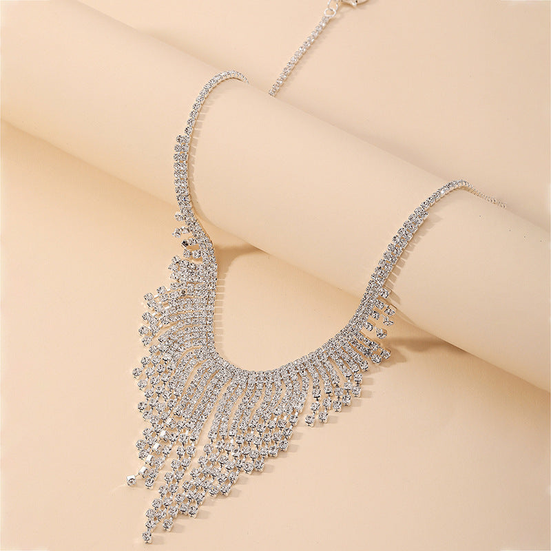 Fashion Geometric Rhinestone Tassel Statement Necklace for Women