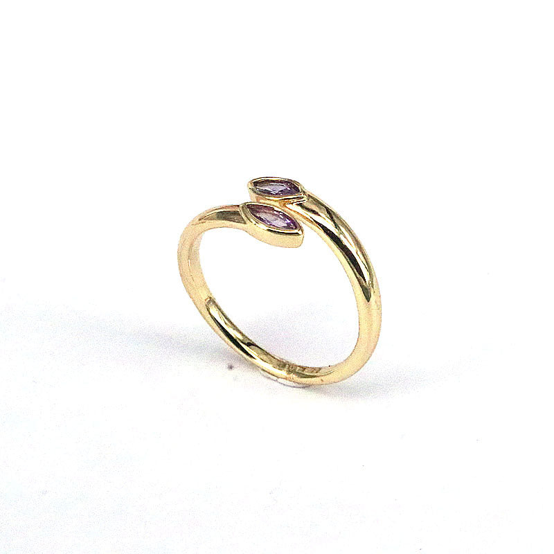 Geometric Gold Plated Zircon Open Ring - Vintage Style Adjustable Copper Ring for Women