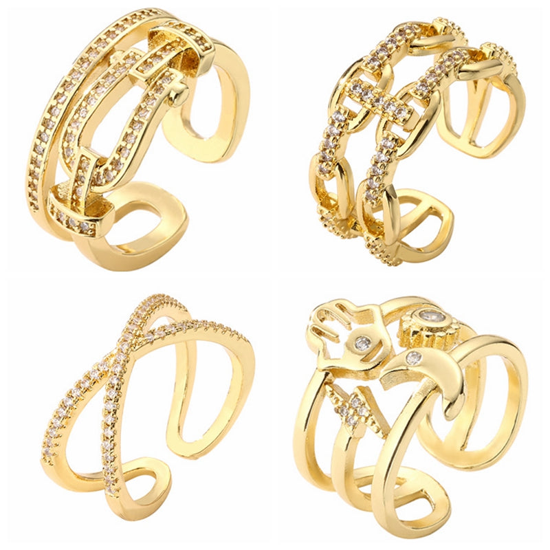 Geometric Gold Plated Zircon Evil Eye Open Ring