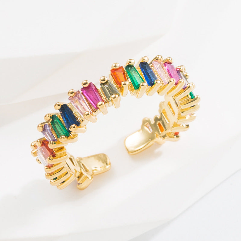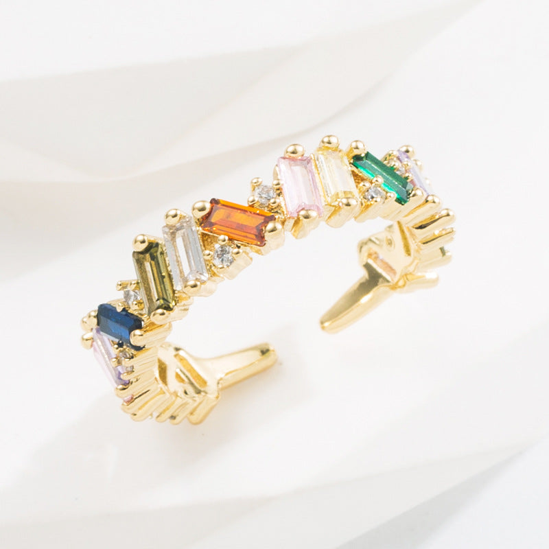 Fashion Geometric Gold Plated Zircon Adjustable Open Ring