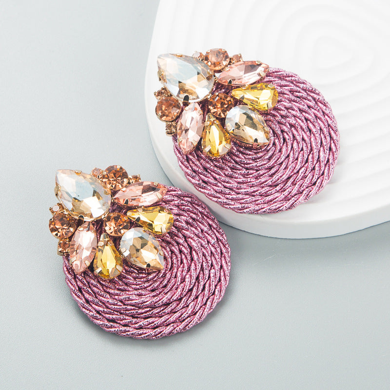 Fashion Geometric Glass Crystal Braided Statement Earrings
