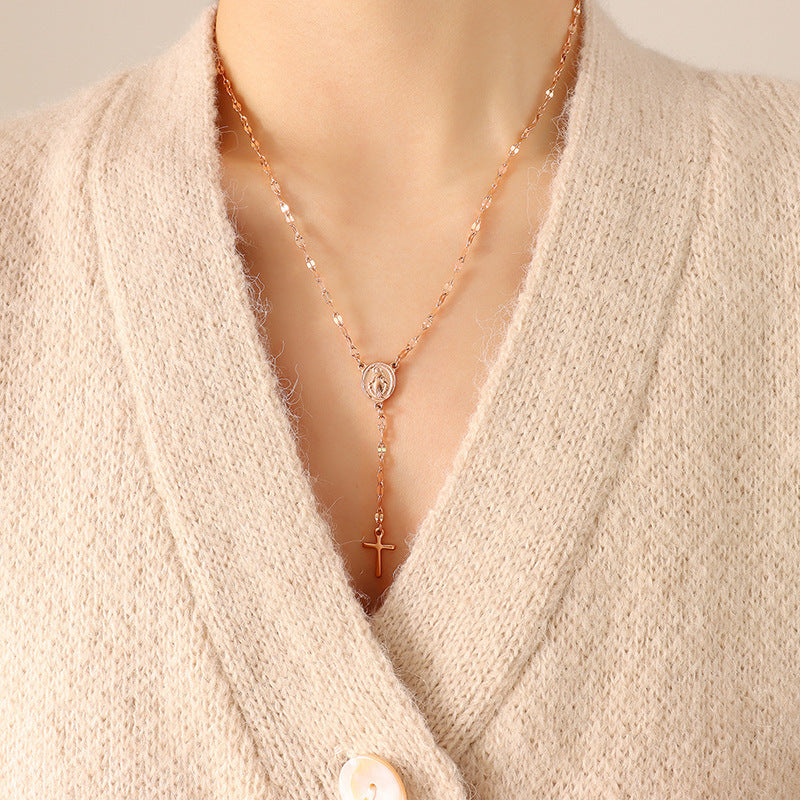 Geometric Jesus Cross Pendant Necklace in Gold-Plated Titanium Steel