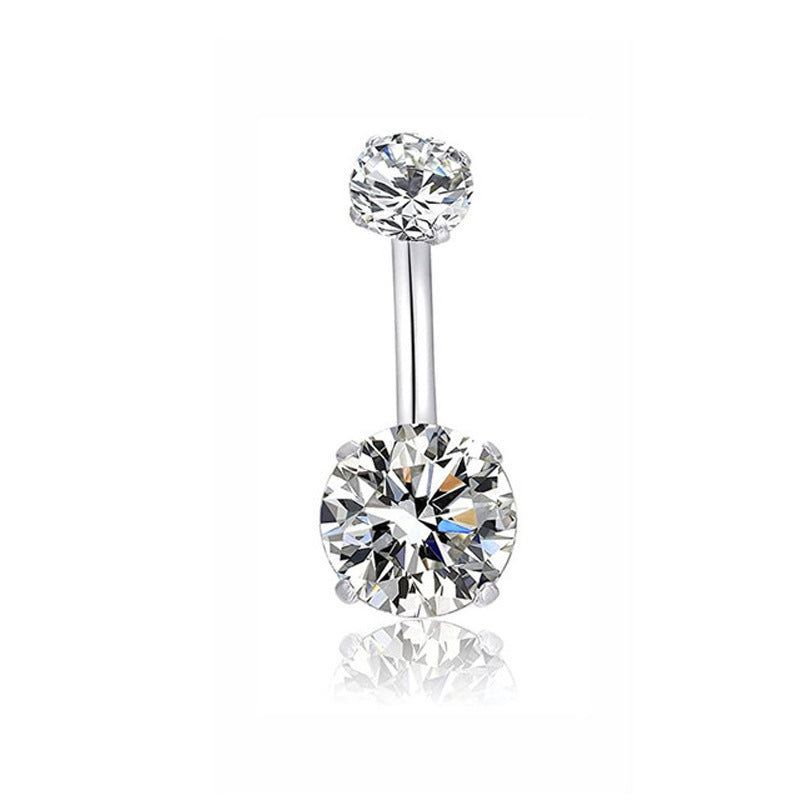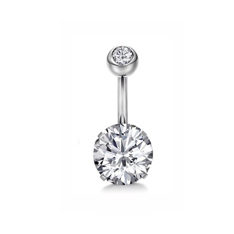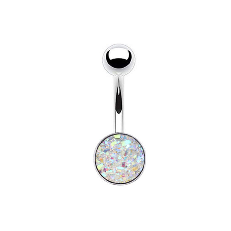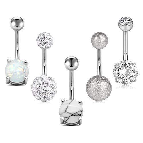 Geometric Stainless Steel Zircon & Opal Belly Ring Set - 5 Pieces Silver