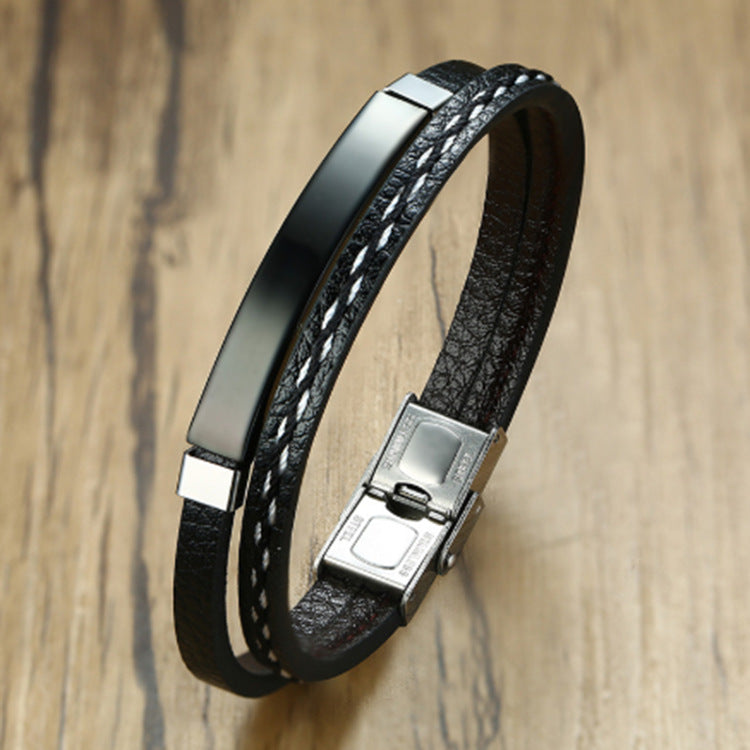 Fashion Geometric Stainless Steel PU Leather Braided Bracelet