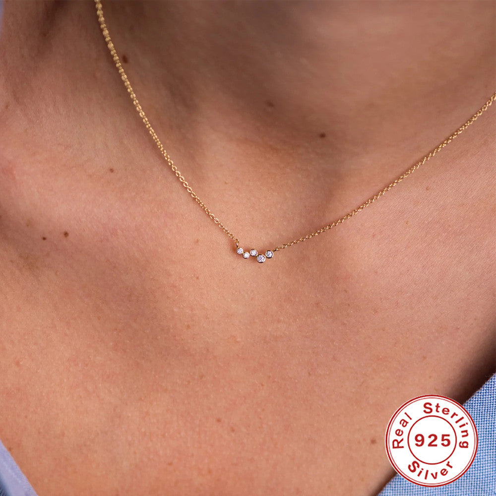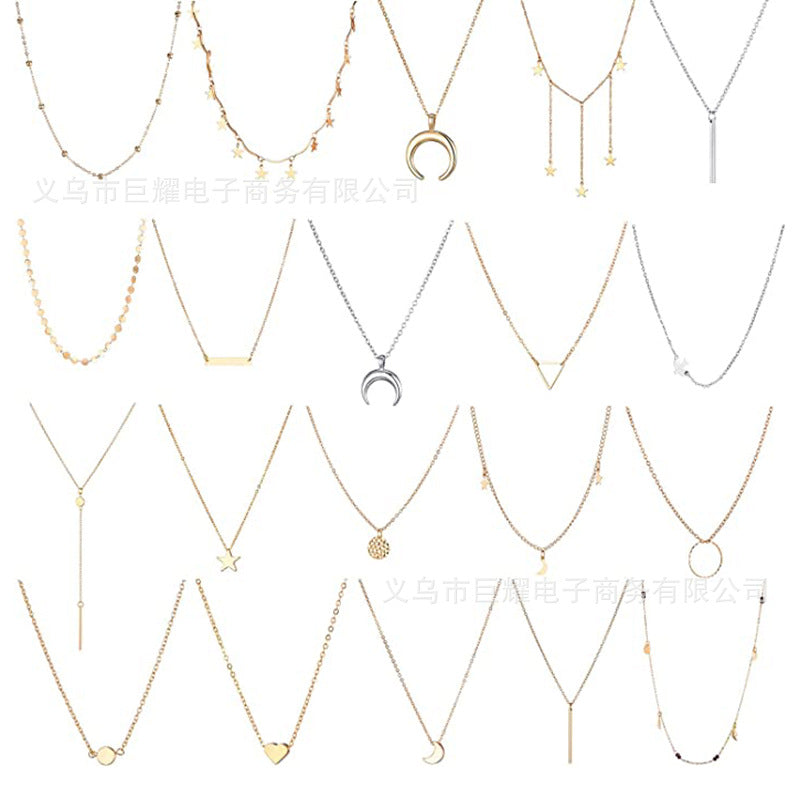 Geometric Sterling Silver Zircon Pendant & Multi-Layer Coin Moon Star Necklace