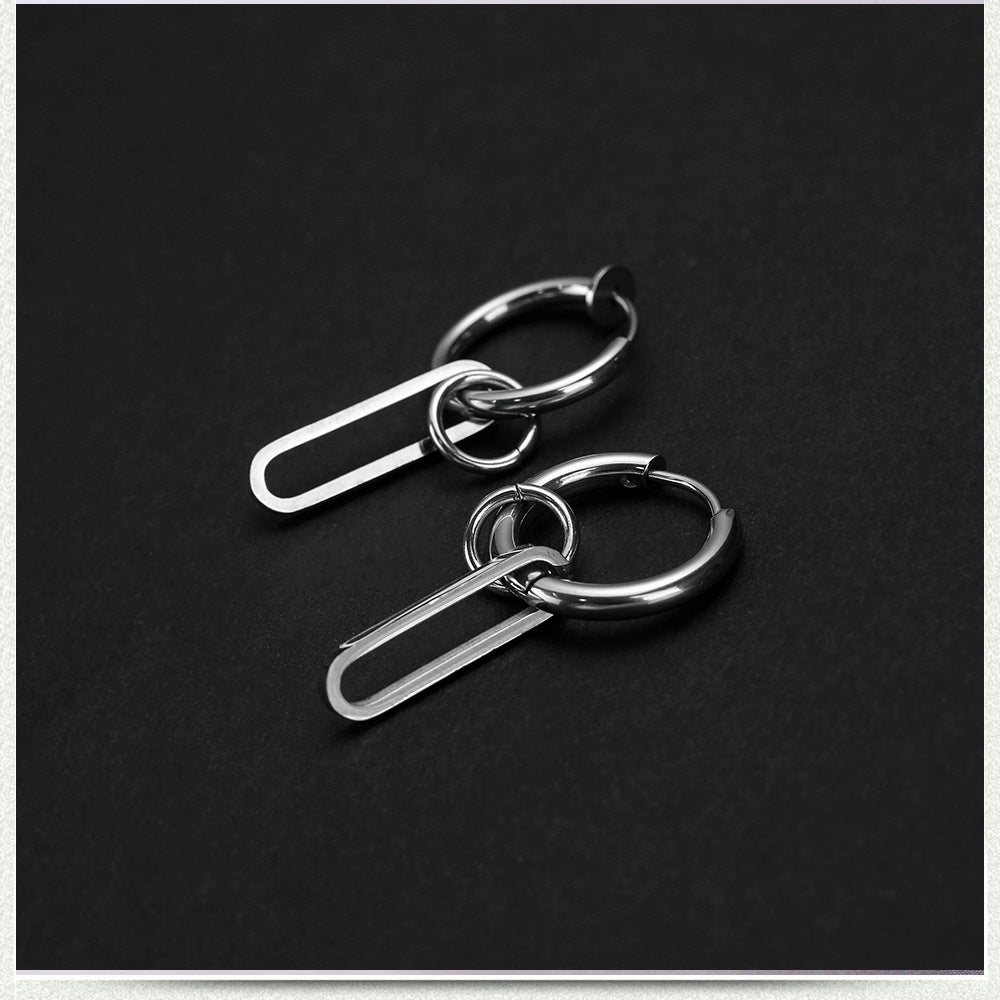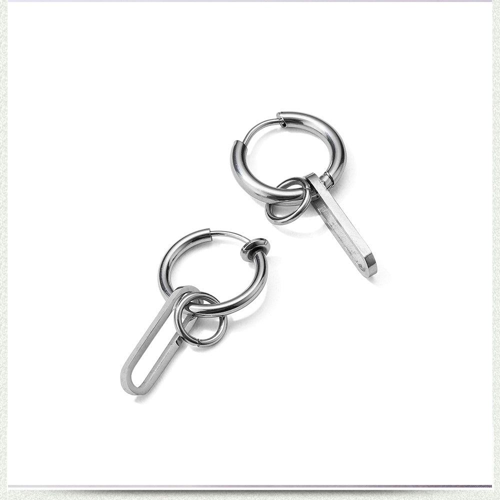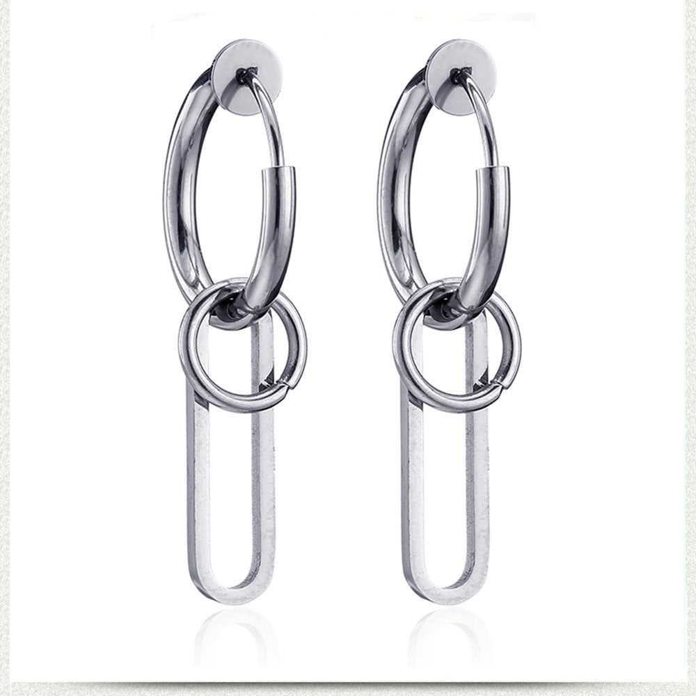Geometric Titanium Steel Hoop Earrings - Stainless Steel Dangle Design