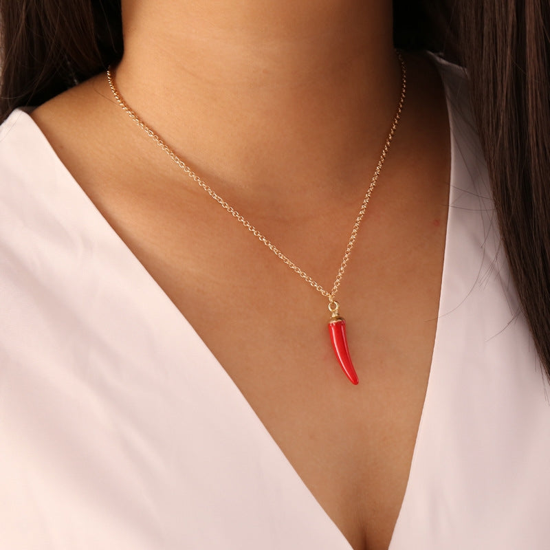 Heart & Red Chili Lips 18K Gold Plated Necklace for Women