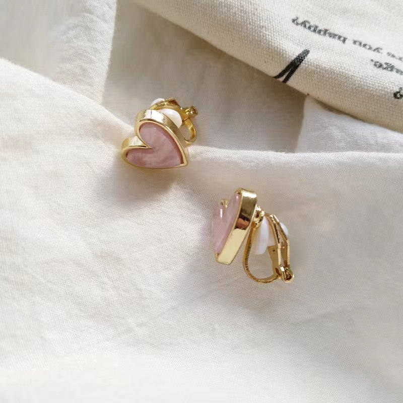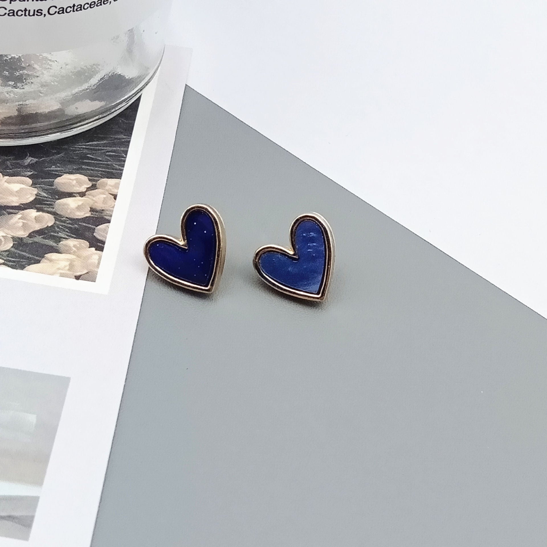 Elegant Blue Heart Enamel Alloy Ear Clips and Studs