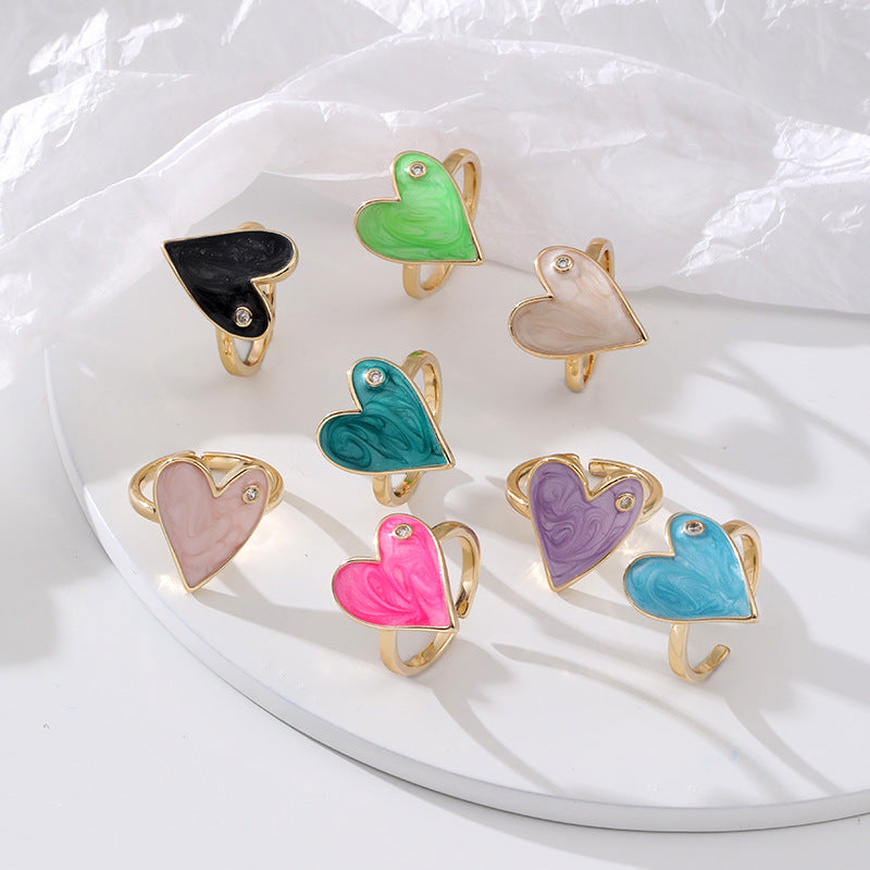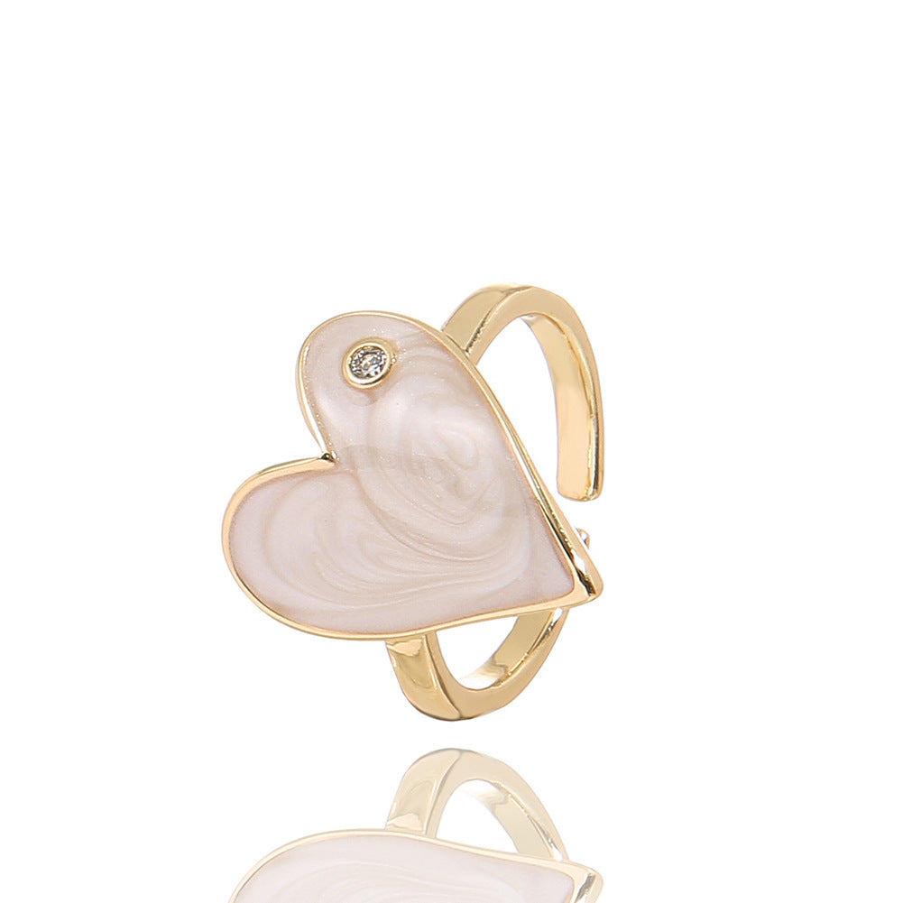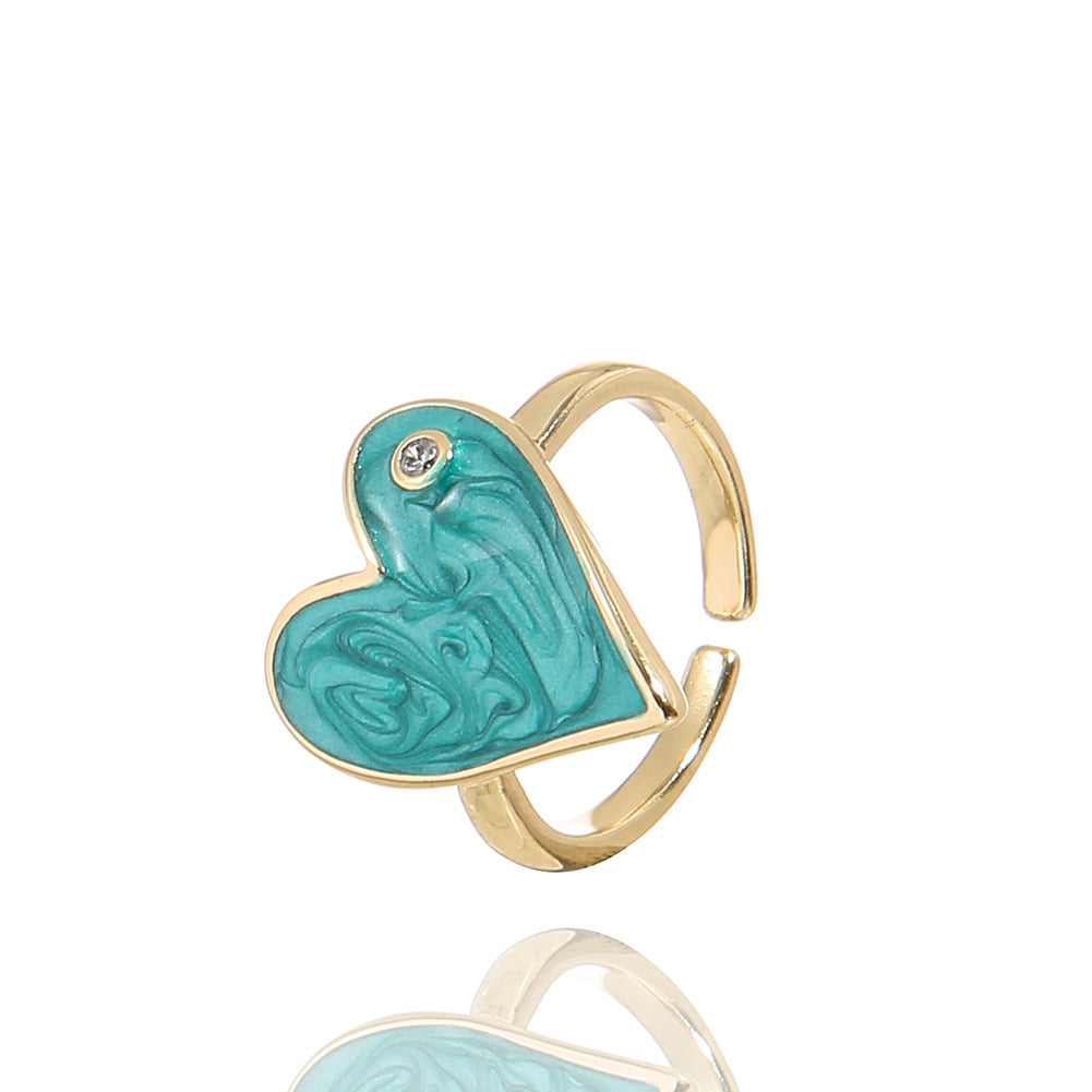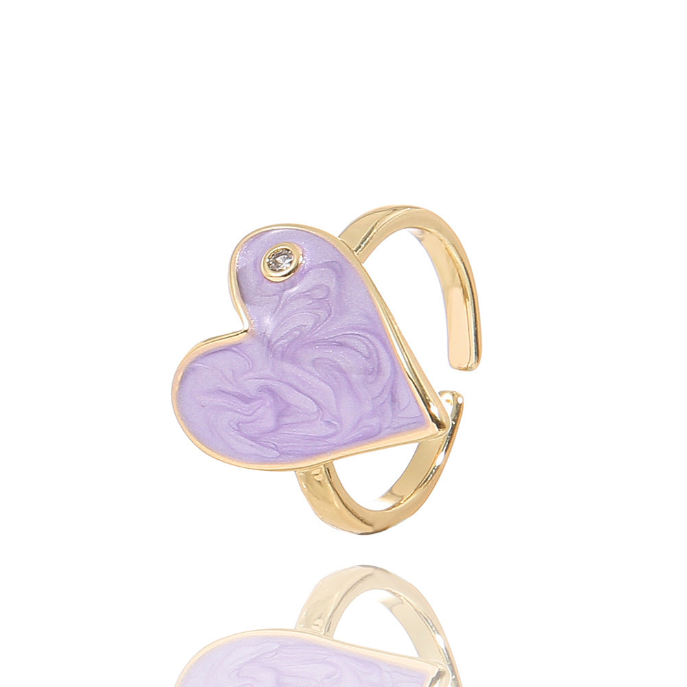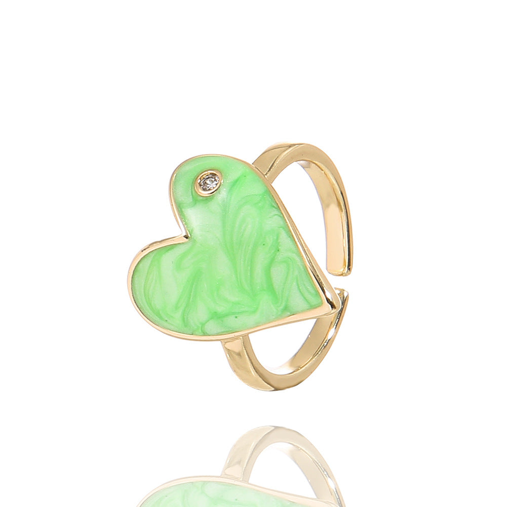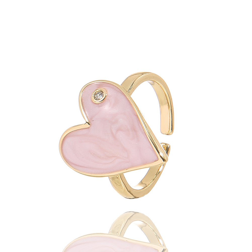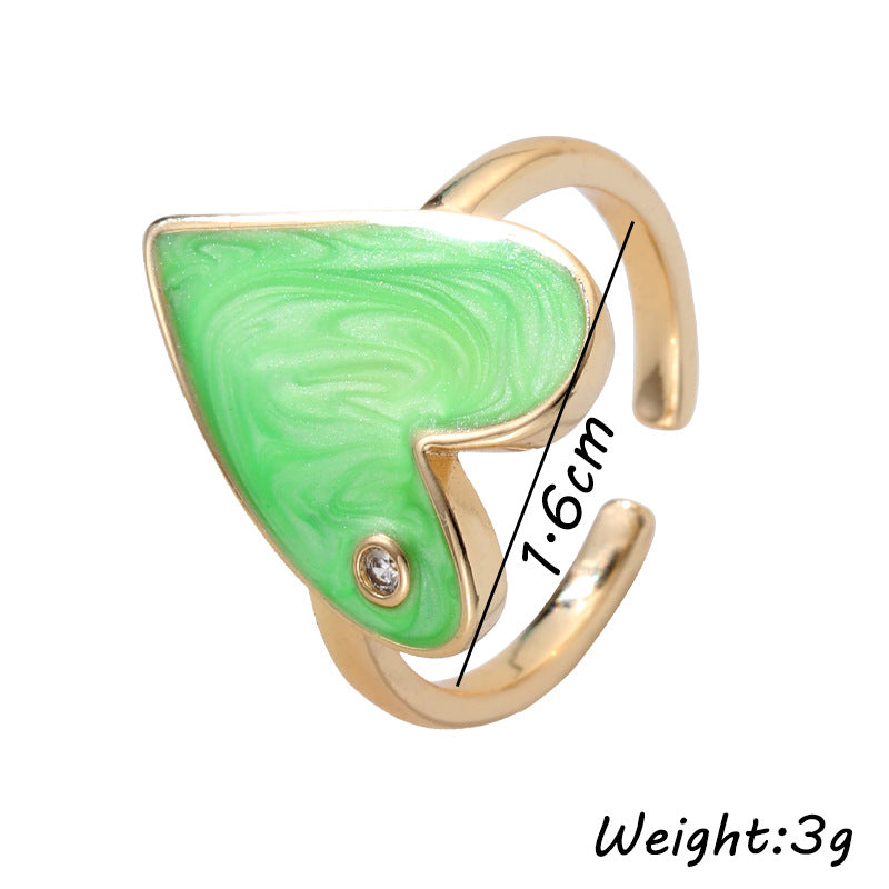 Fashion Heart Shape Adjustable Copper Enamel Zircon Ring