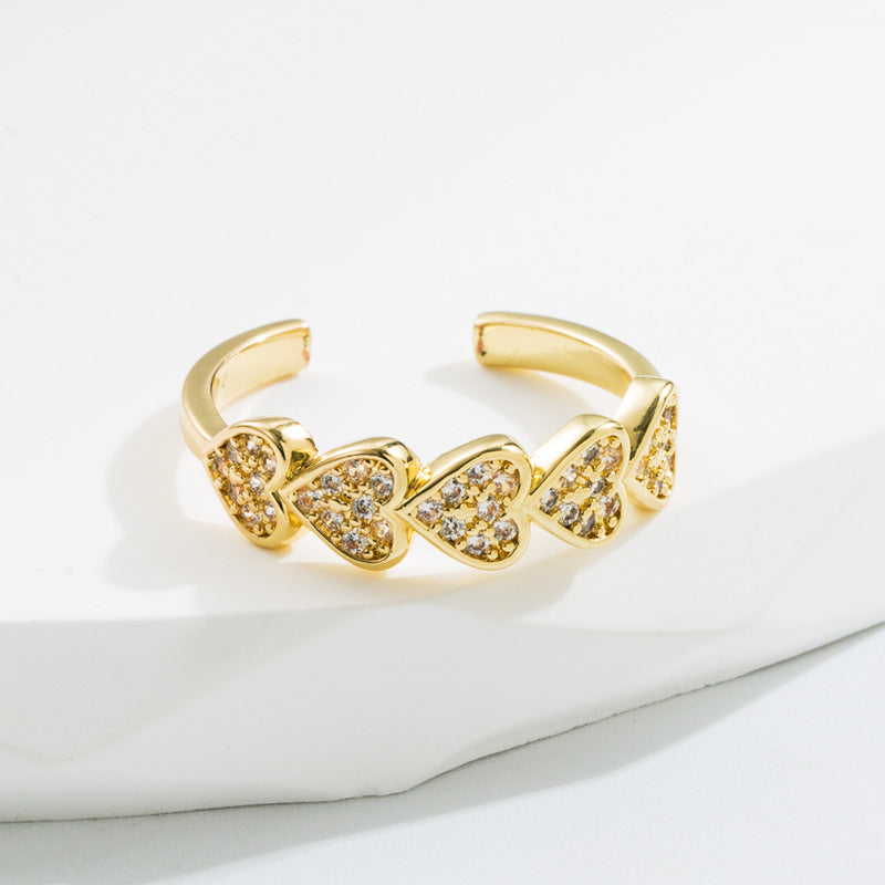 Elegant Heart-Shaped Adjustable Gold Plated Copper Ring with Zircon