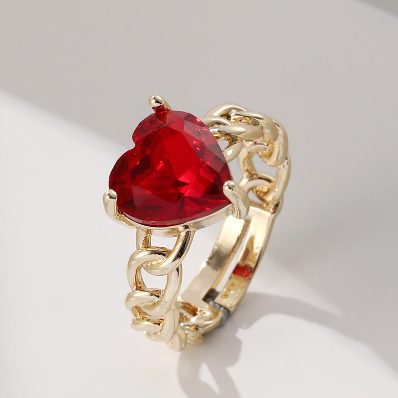 Fashion Heart-Shaped Gold Plated Zircon Adjustable Ring