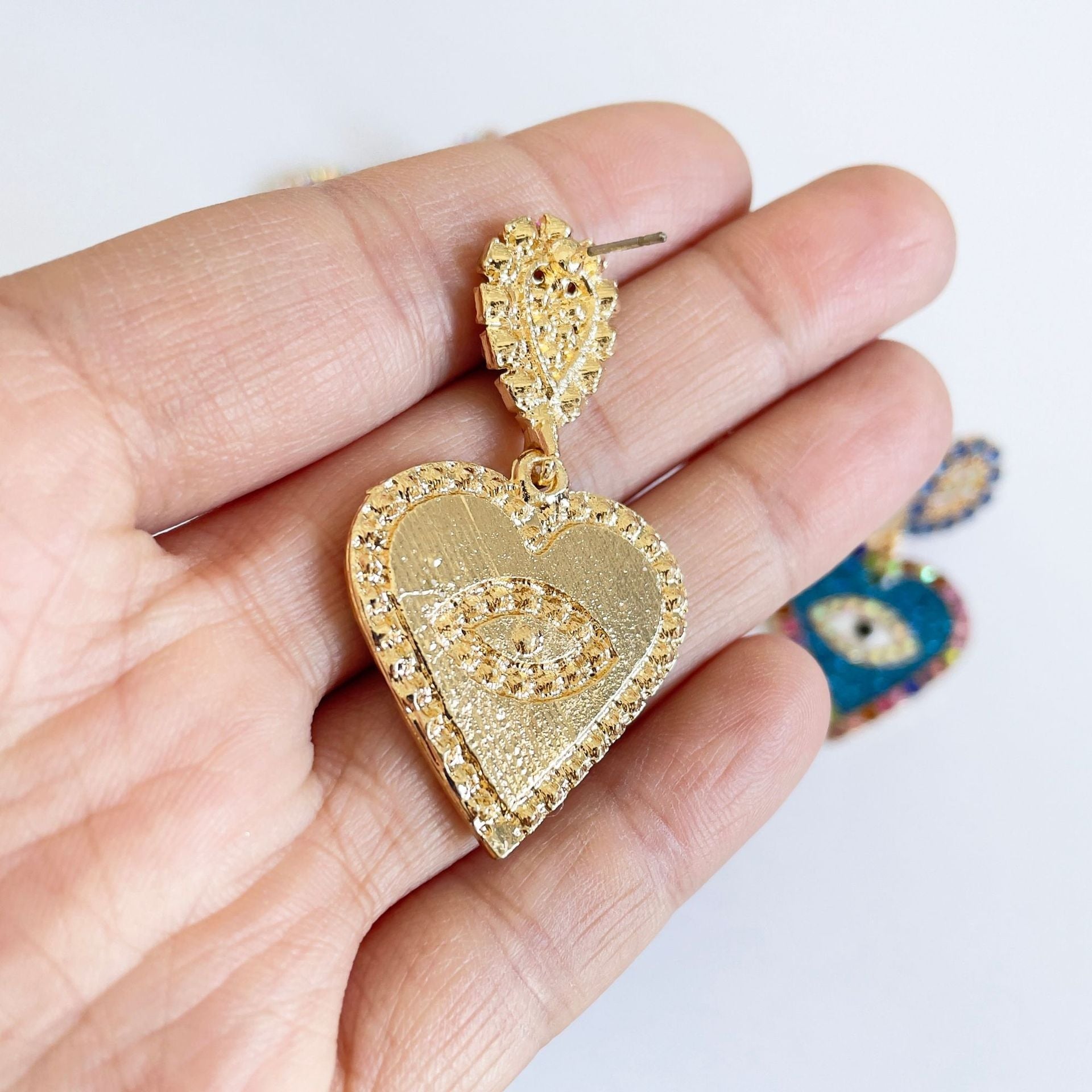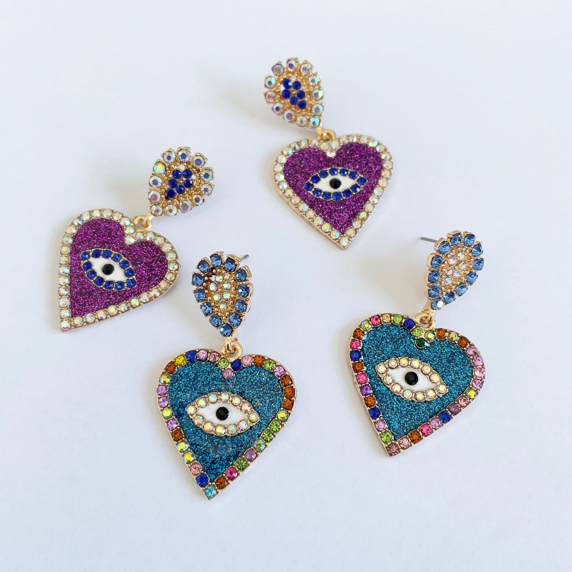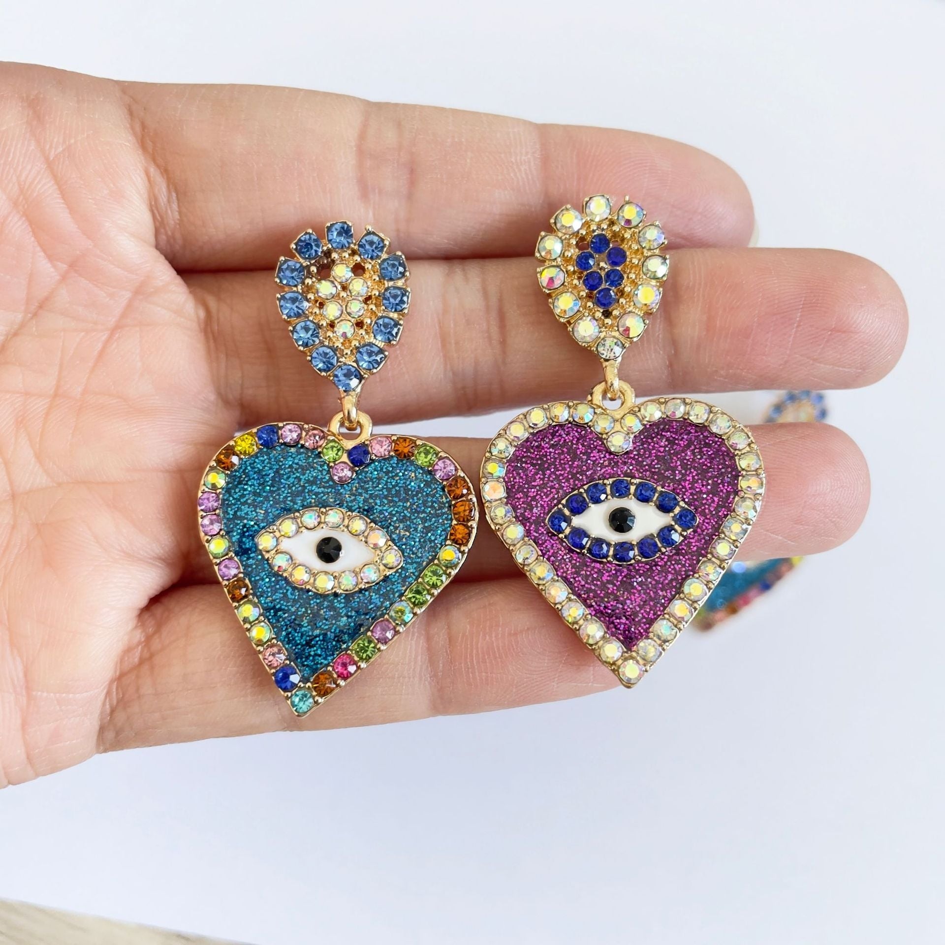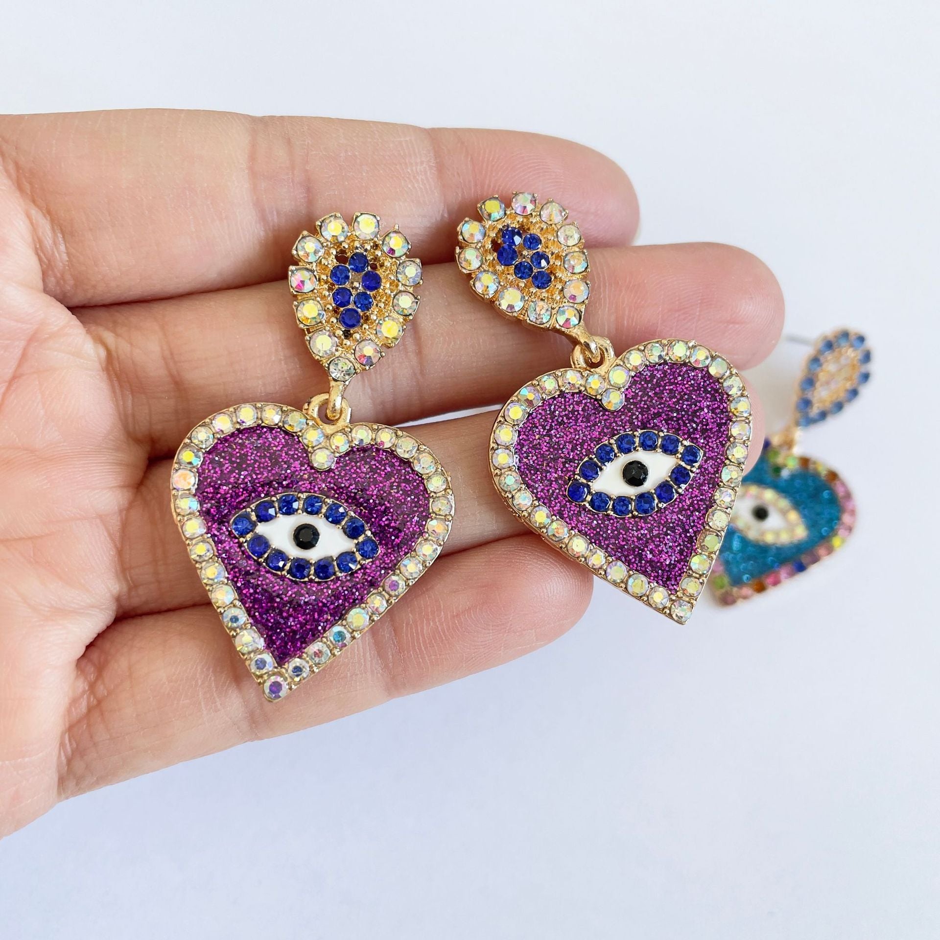 Fashion Heart Eye Rhinestone Inlay Women's Drop Earrings