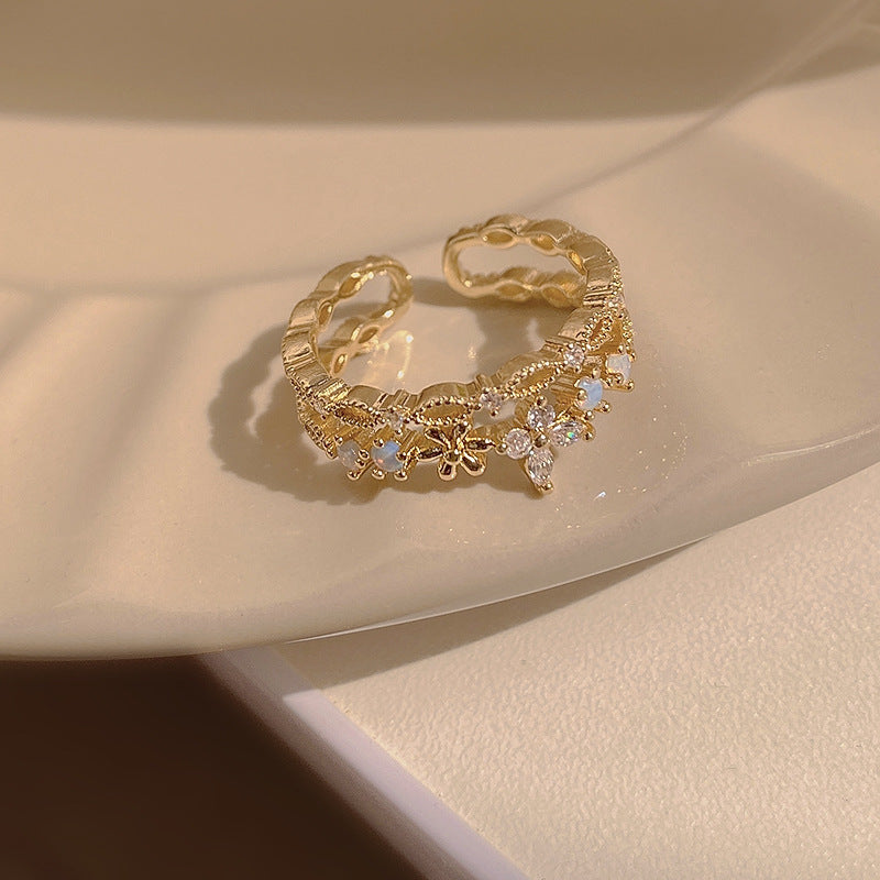 Heart Shape Flower Zircon Crystal Open Ring