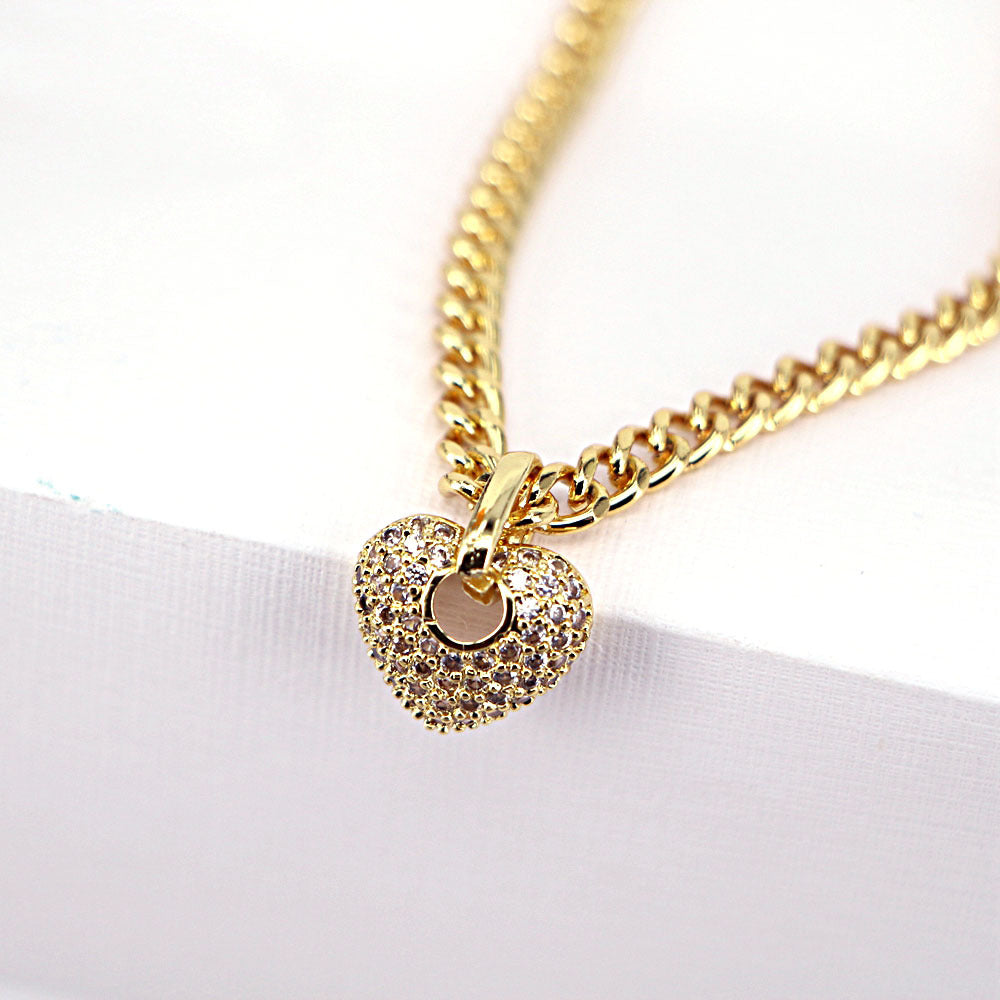 Fashion Heart Zircon Pendant Thick Chain Necklace for Women