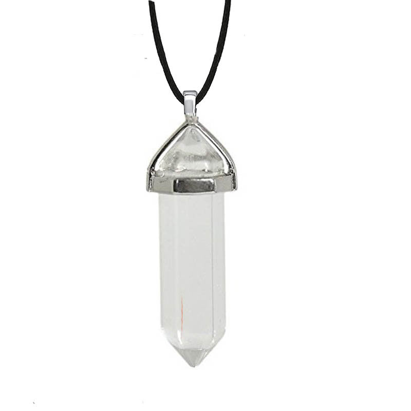 Hexagon Prism Natural Stone Leather Rope Necklace with Quartz Point Pendant